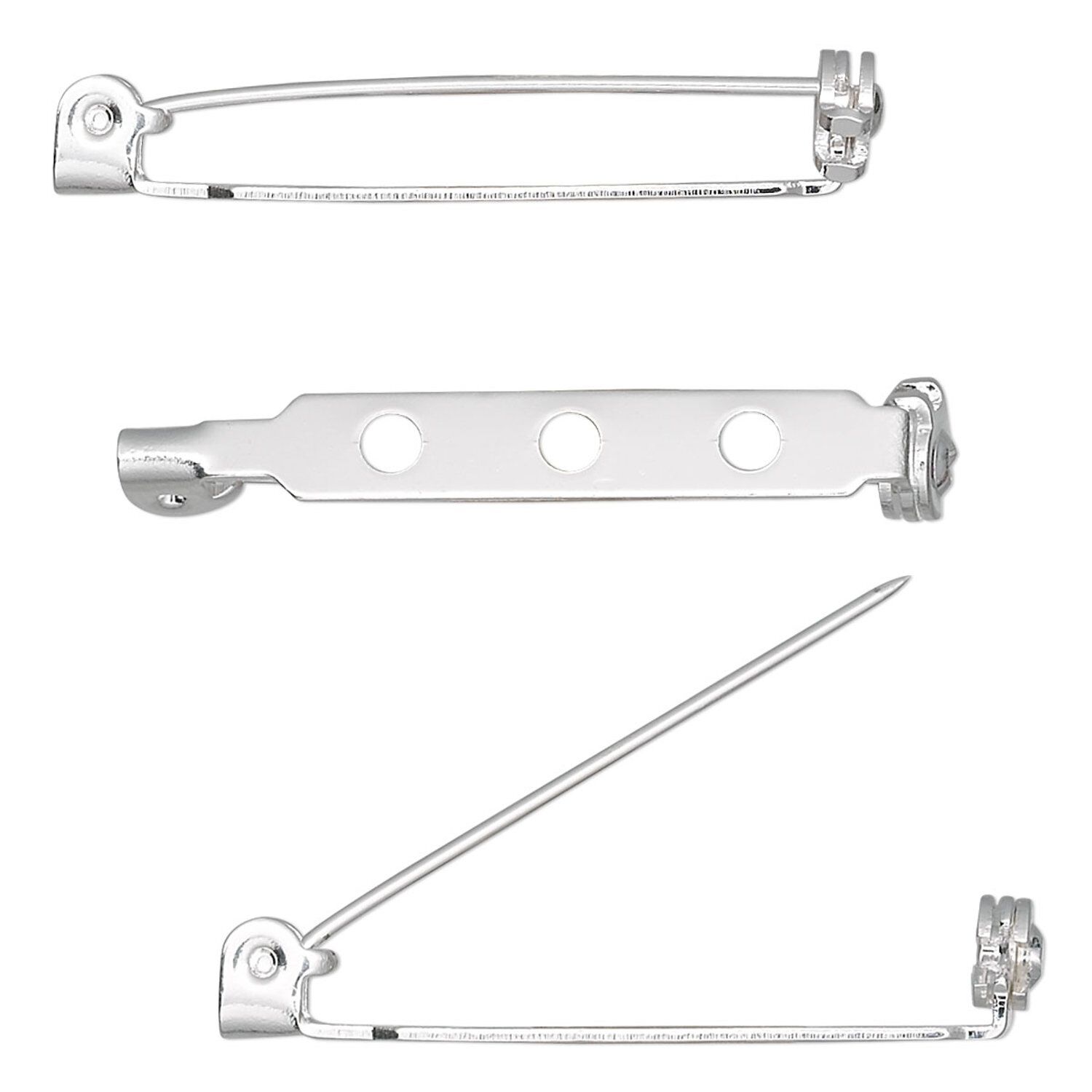 Pin back, silver-plated steel, 1-1/4 inches with locking bar. Sold per pkg of 100.