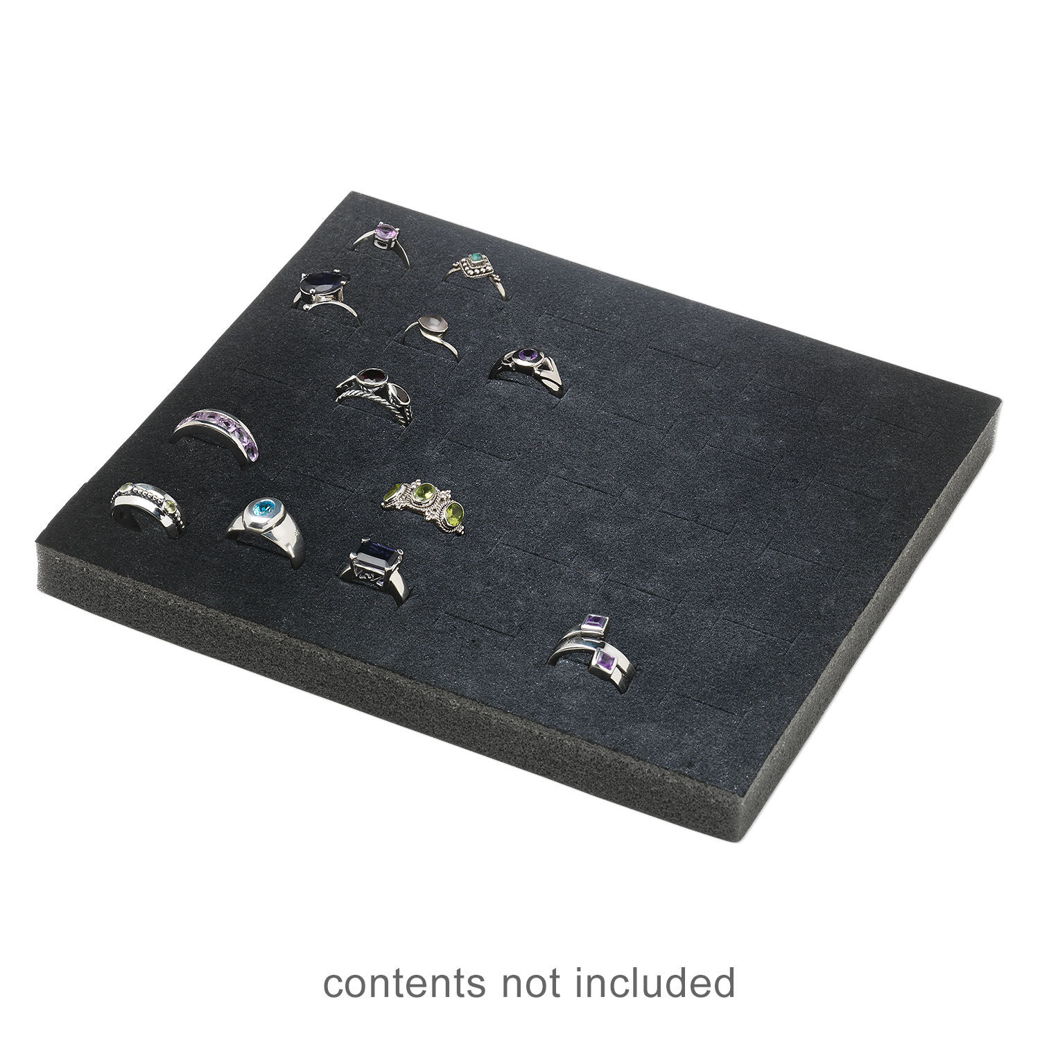 Display insert, ring, foam, black, 7-3/4 x 6-3/4 x 3/4 inches with 30 slots, fits standard half tray. Sold individually.