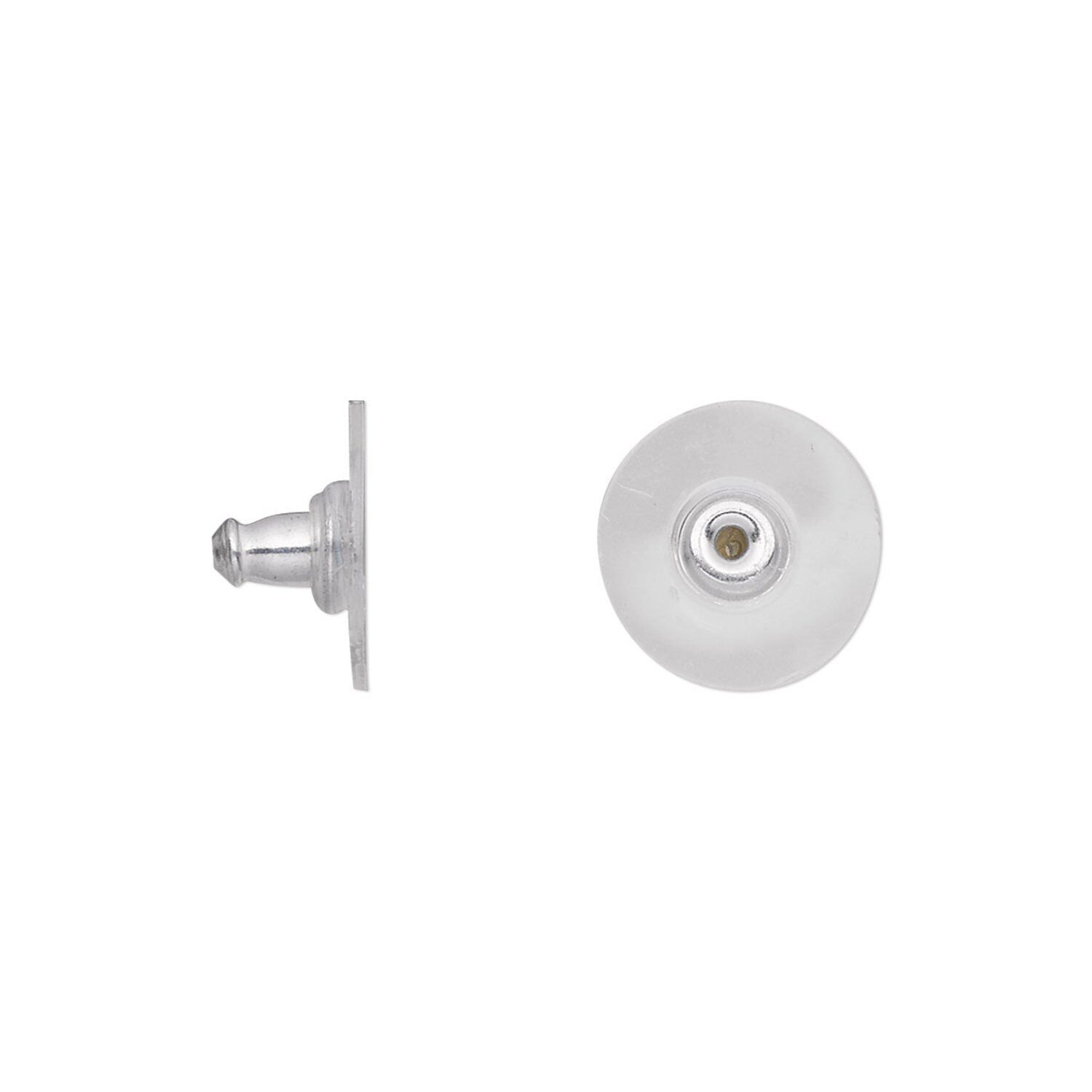 Earnut 1pkg100 imitation rhodium-plated, 12x7mm, comfort clutch, aluminum / plastic 50 pair