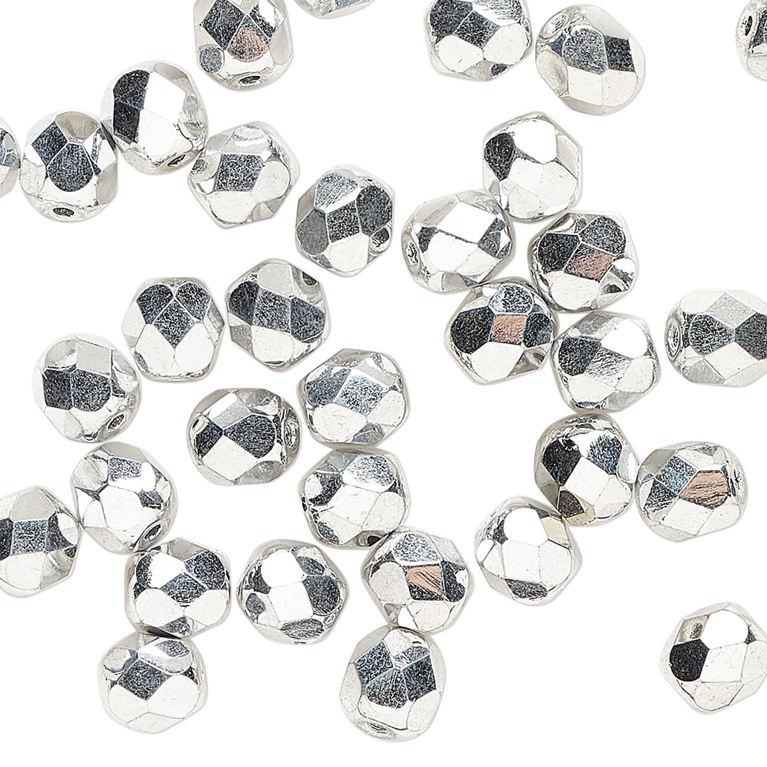 Bead 1pkg1200, Czech fire-polished glass, opaque metallic silver, 6mm faceted round, 1 mass.