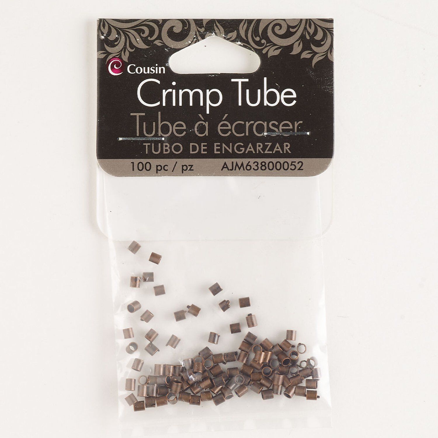 Crimp, antique copper-finished "pewter" (zinc-based alloy), 2mm round tube. Sold per pkg of 100.