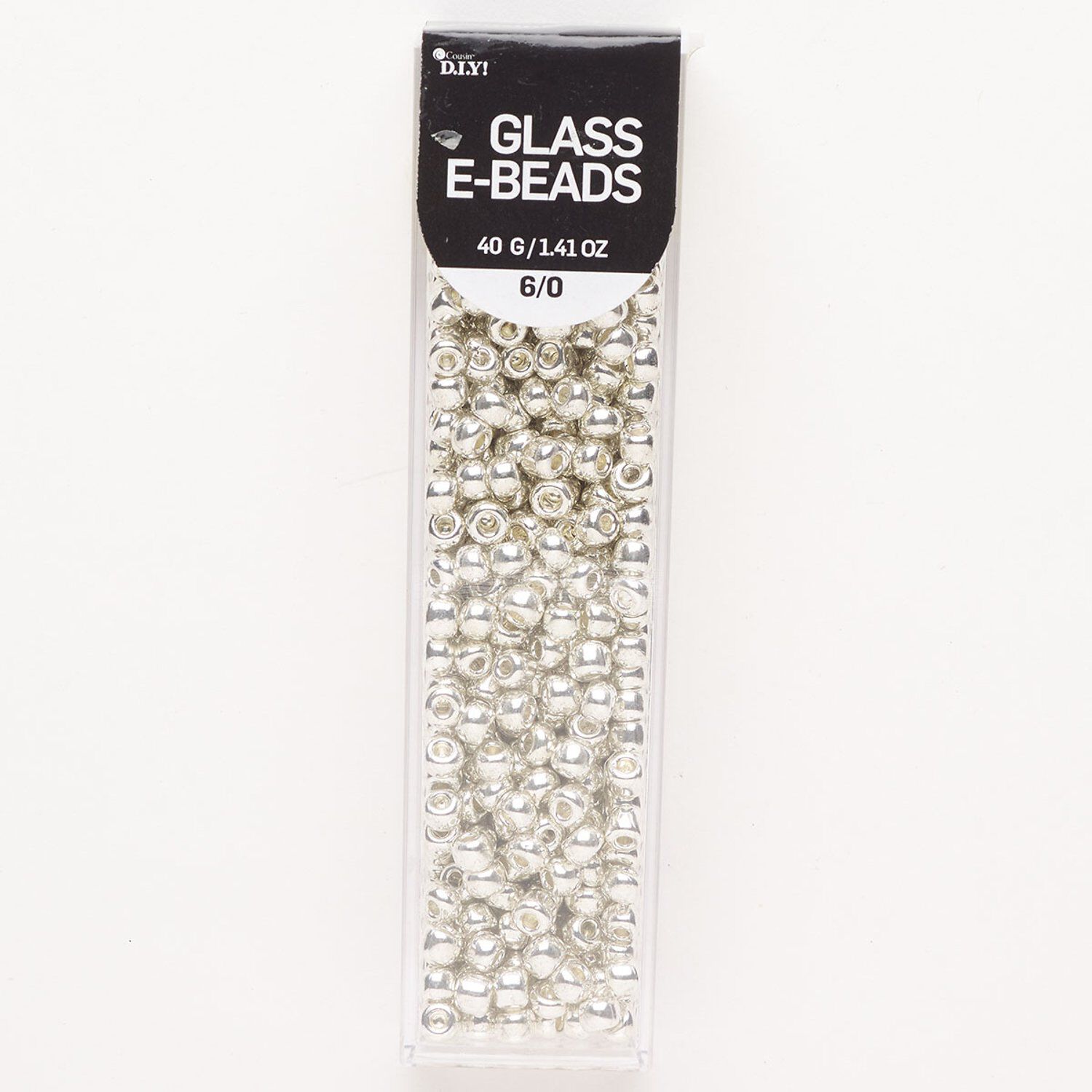 Seed bead, glass, pkg/40g, #6 round, opaque silver.