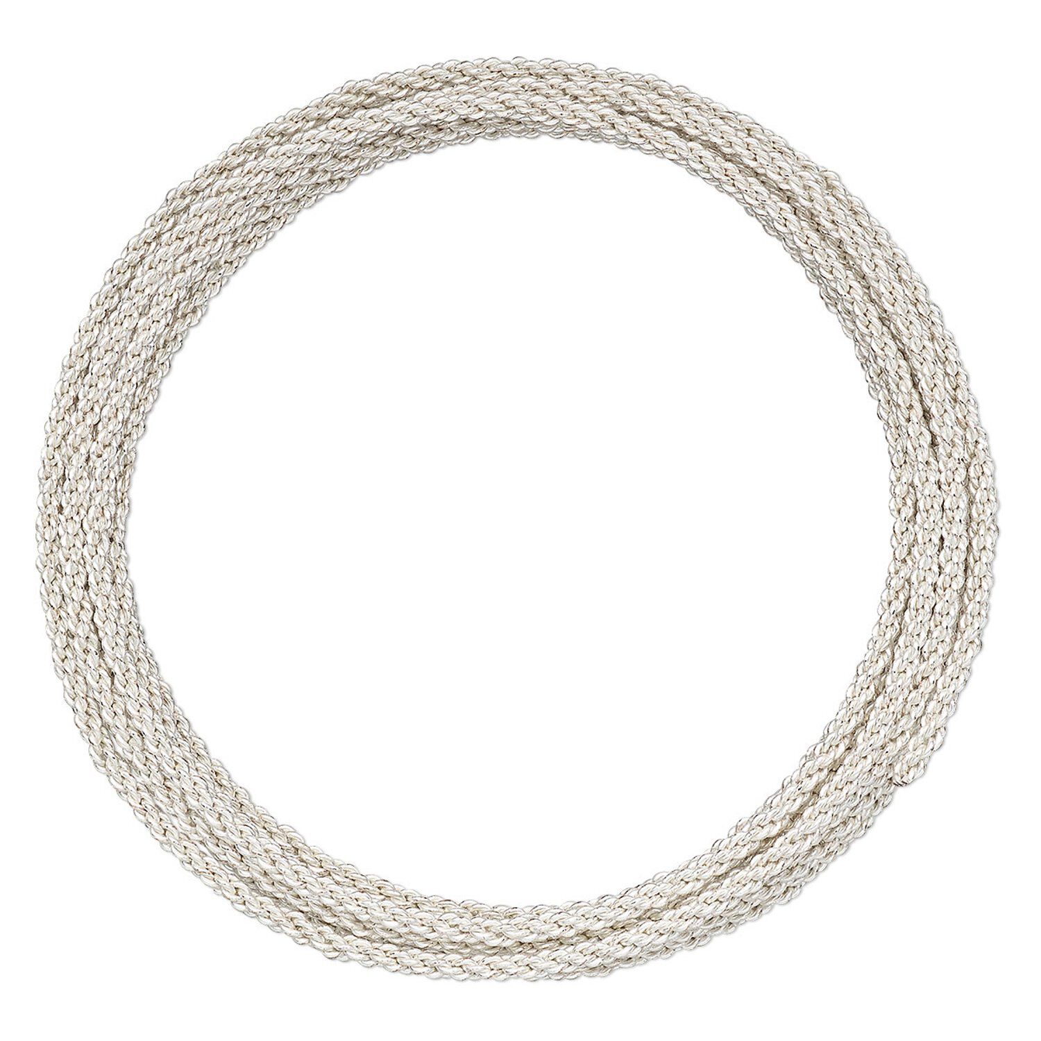 Wire, Artistic Wire® Braid™, silver-plated copper, 2.1mm braided round, 12 gauge. Sold per pkg of 5 feet.
