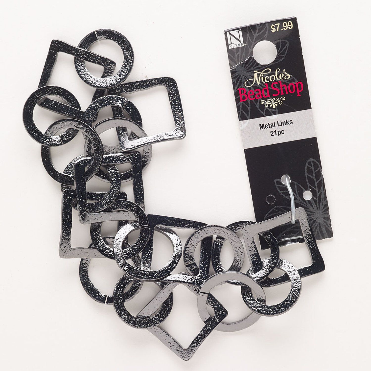 Chain, steel, pkg/14 inches, 33mm textured flat round and 33mm textured flat diamond, black finish.