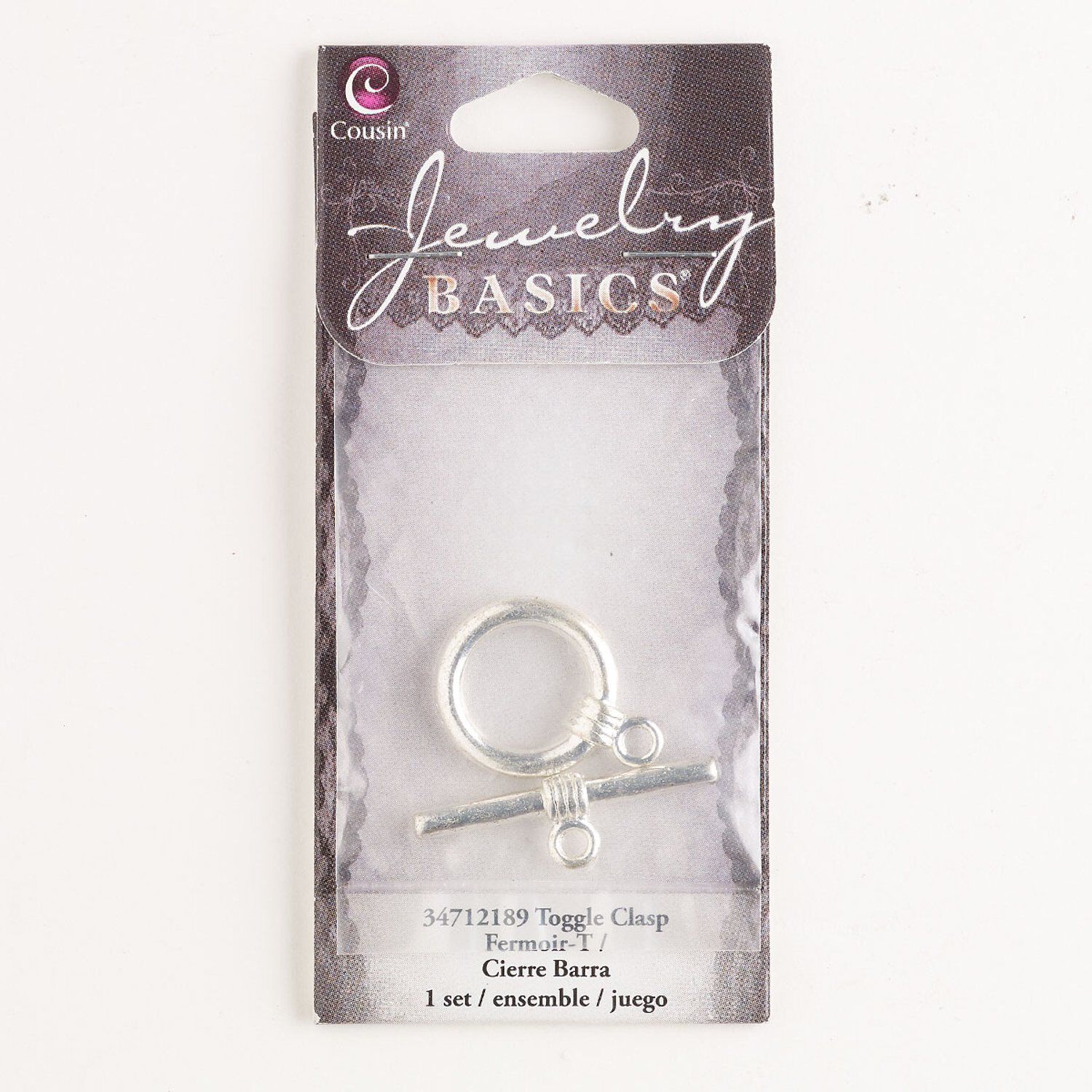 Clasp toggle 1pkg1, 19mm round, silver-finished brass 1-strand