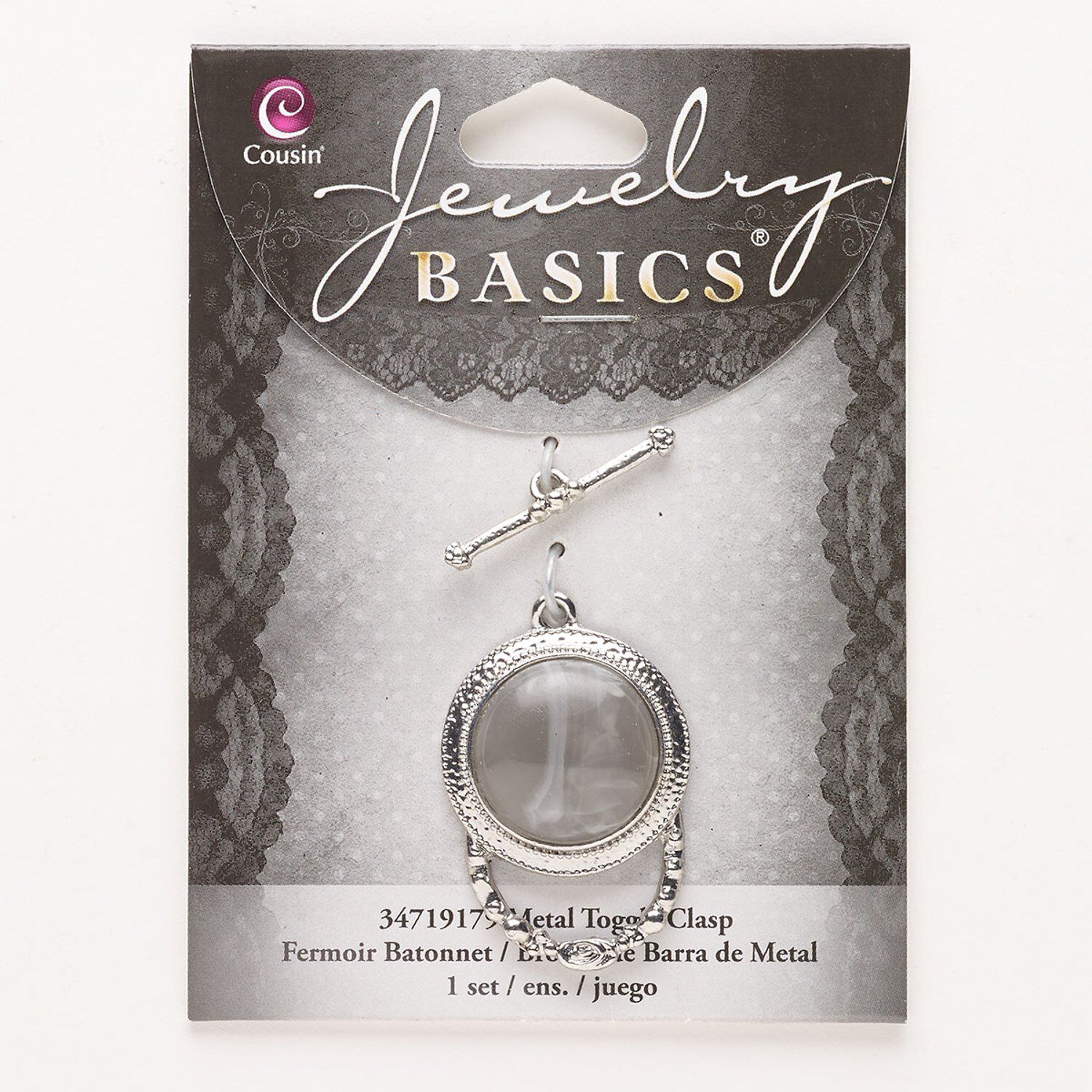 Clasp toggle 1pkg1 "pewter" (zinc alloy), 33x24mm round, silver-finished acrylic grey 1-strand