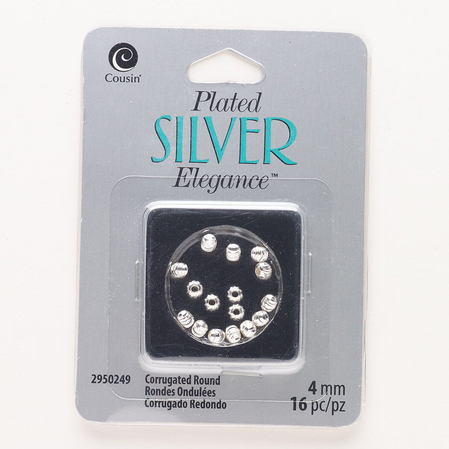 Bead, "pewter" (zinc-based alloy), pkg/16, 4mm corrugated round, silver finish.