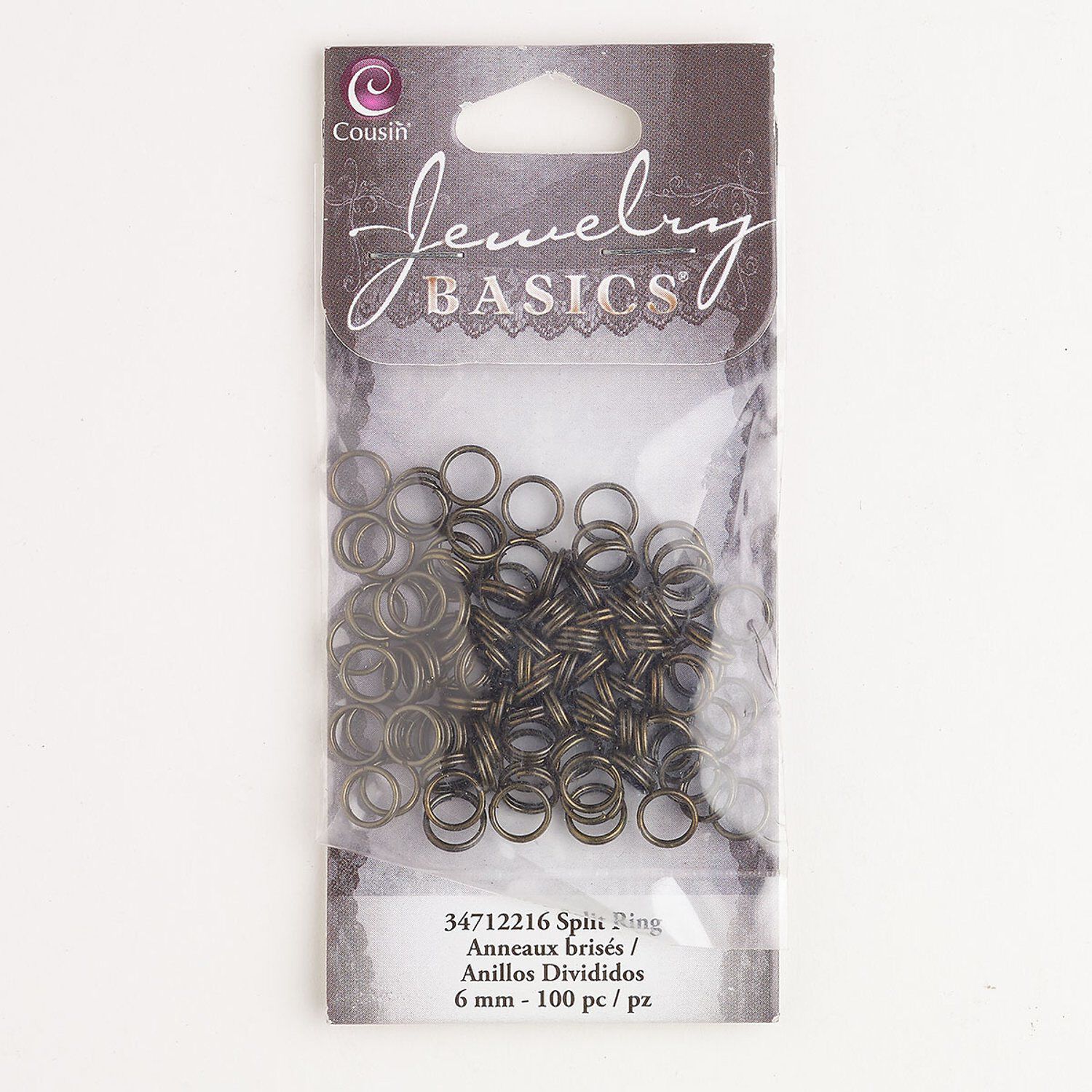 Split ring, steel, pkg/100, antique gold finish, 6mm round.