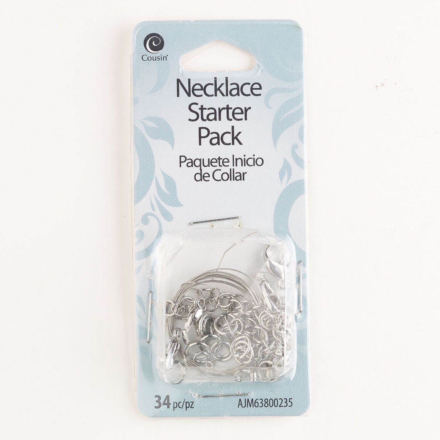 Necklace finding starter kit, steel and brass, pkg/1, mixed sizes and shapes, silver finish.