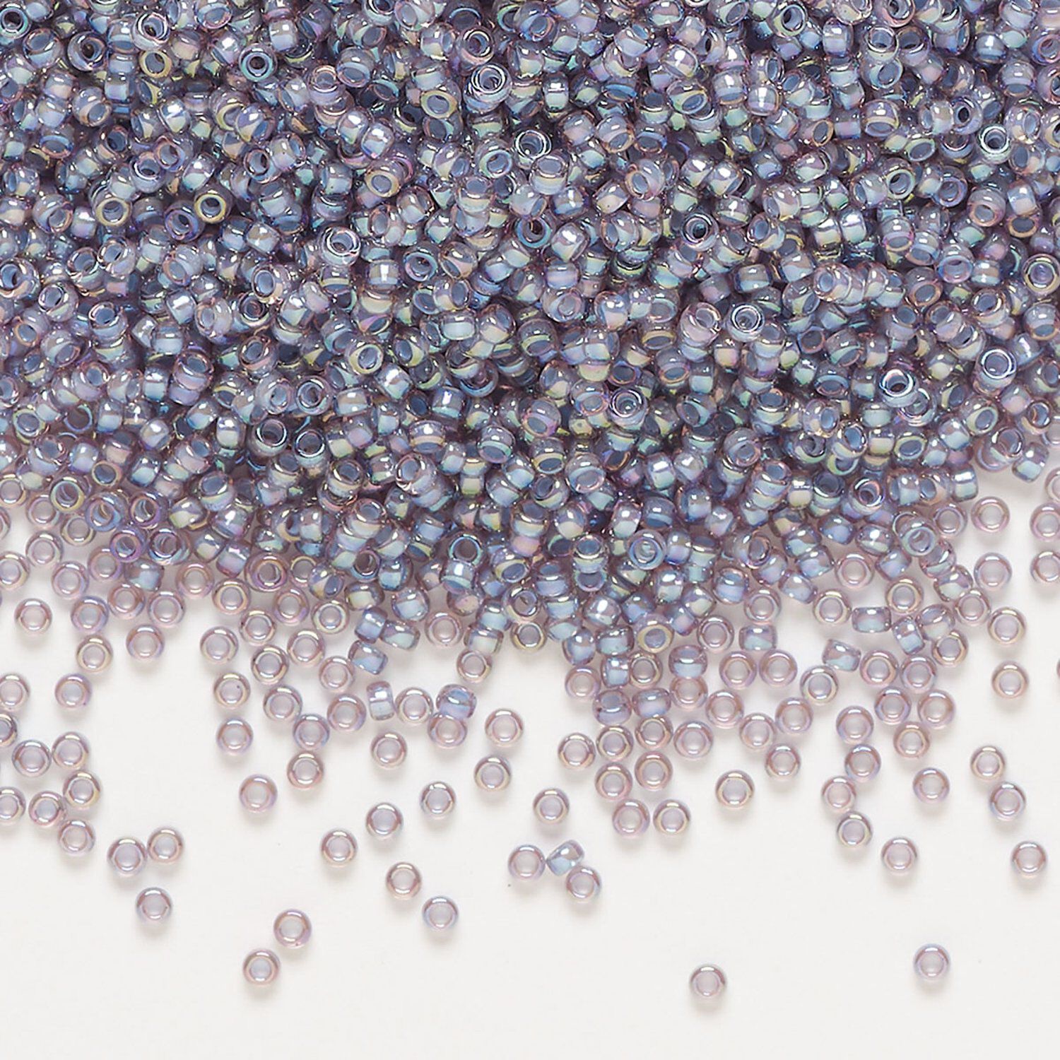 Seed bead, Miyuki, glass, pkg/250g, #15 rocaille, translucent purple-lined rainbow light amethyst (RR-360).