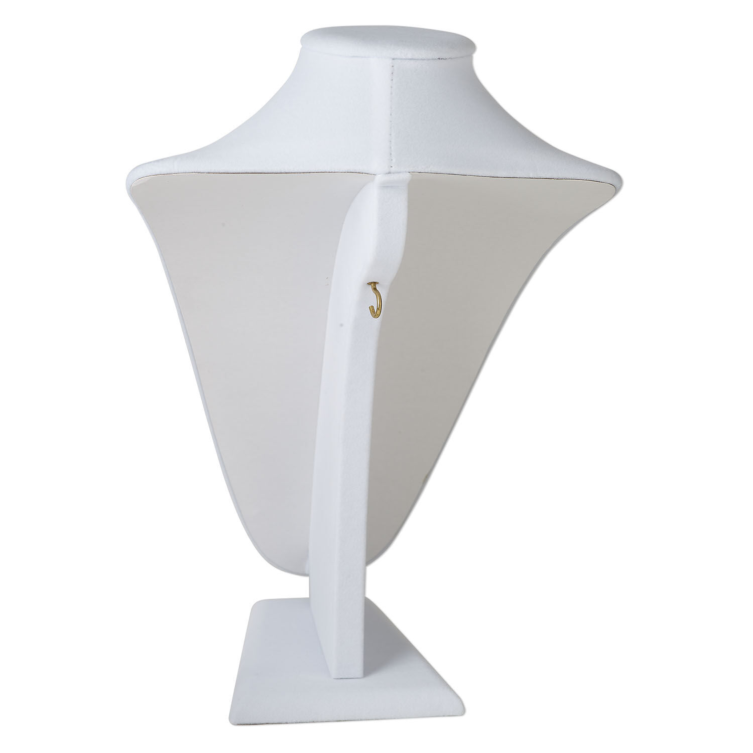 Upright, décolleté-style necklace display gives your design the attention it deserves. Velveteen makes gold, silver and gemstone jewelry stand out from the crowd. A hook in back secures necklace in place and offer versatile positioning.