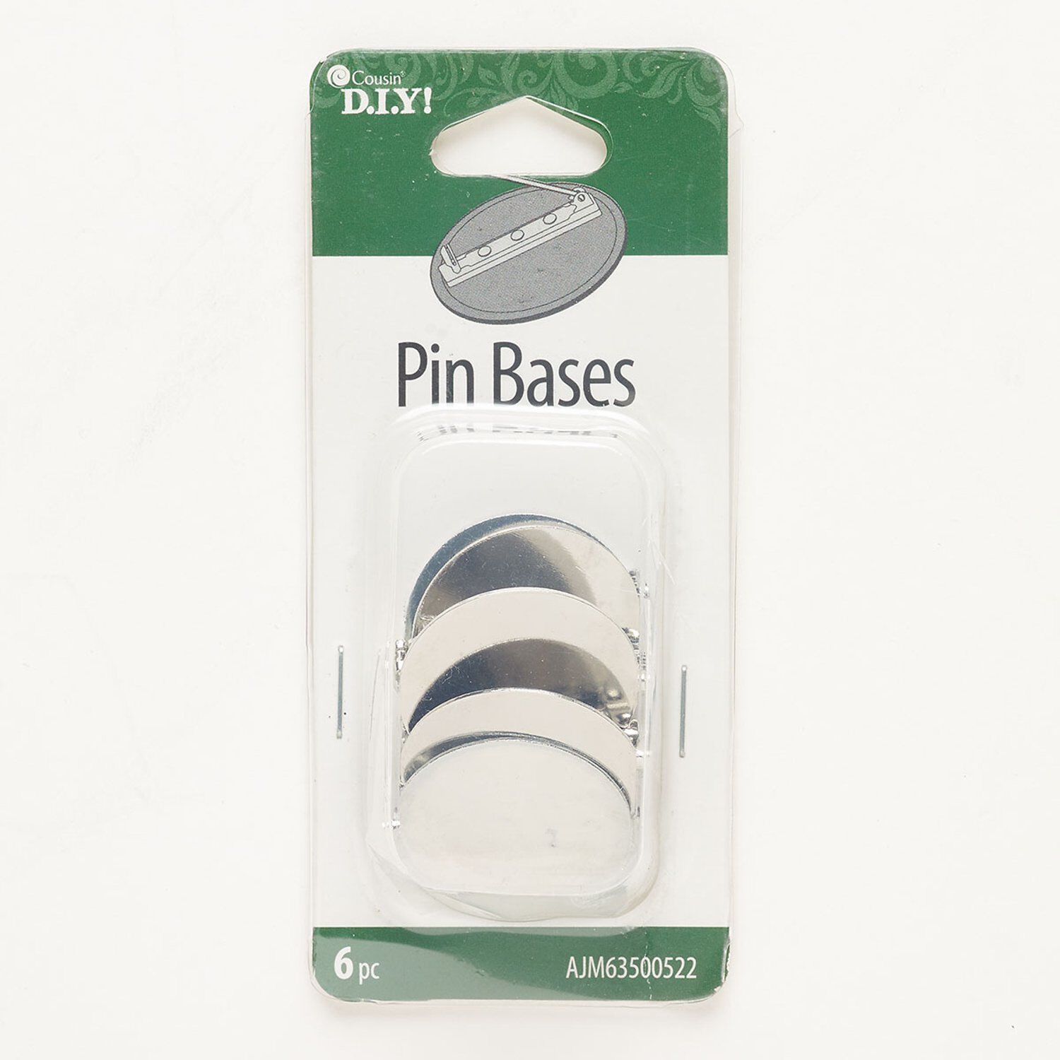 Pinback, steel, pkg/6, silver finish, 26mm round setting.