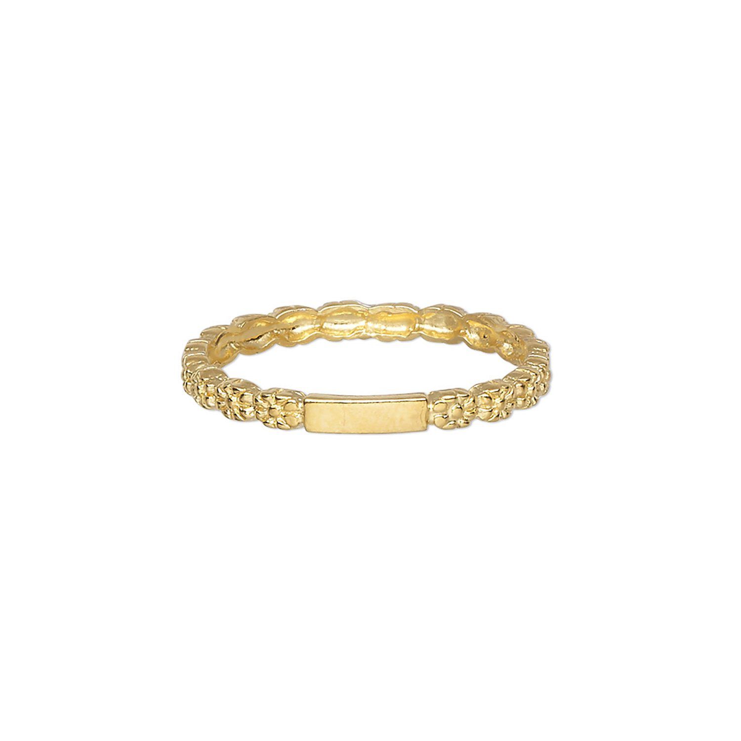 Ring, Create Compliments®, gold-plated sterling silver, clear, 1.5mm wide flower, size 9. Sold individually.