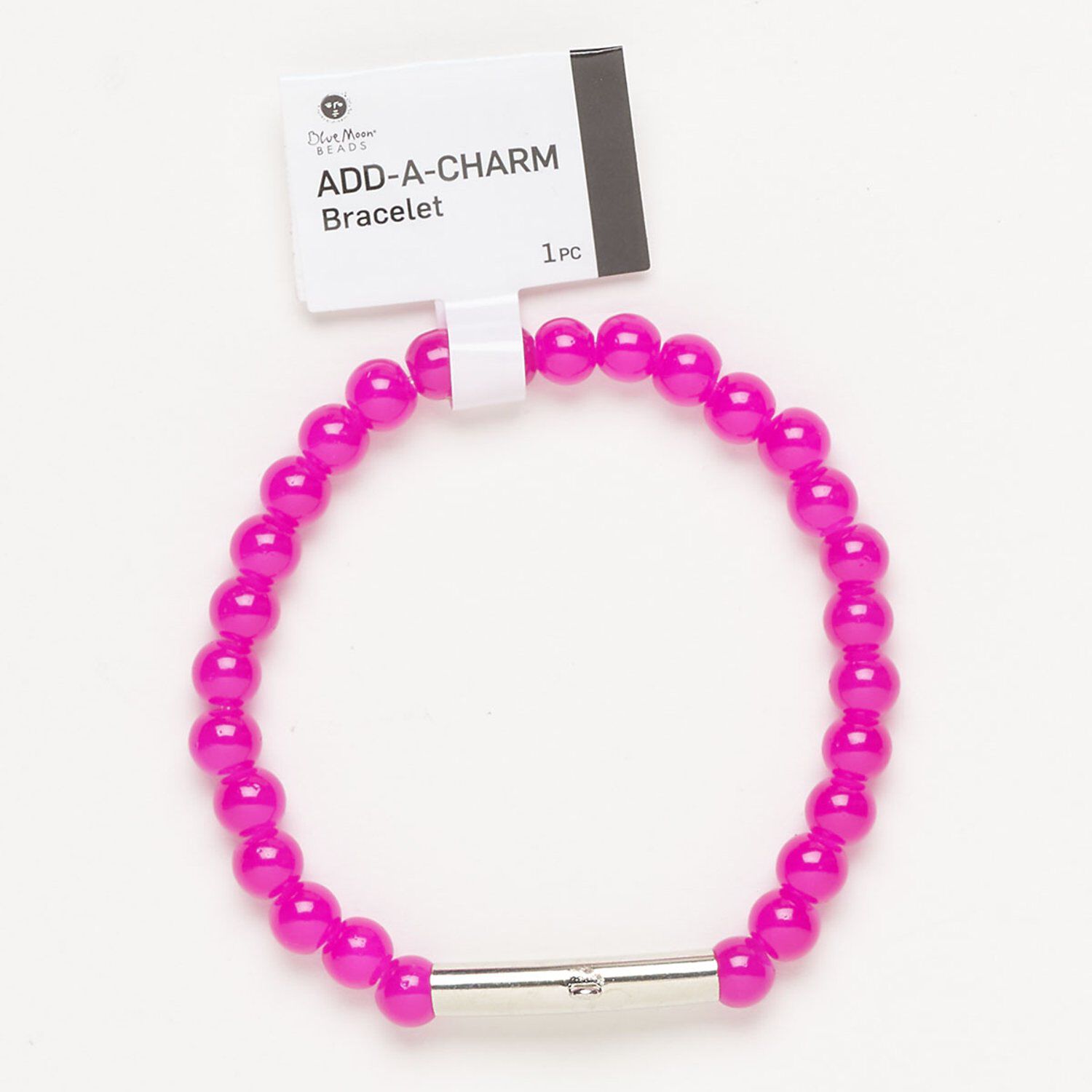 Bracelet, stretch, silver-finished brass and glass, fuchsia, 6mm round and 25x5m round tube with bottom loop, 6-1/2 inches. Sold individually.