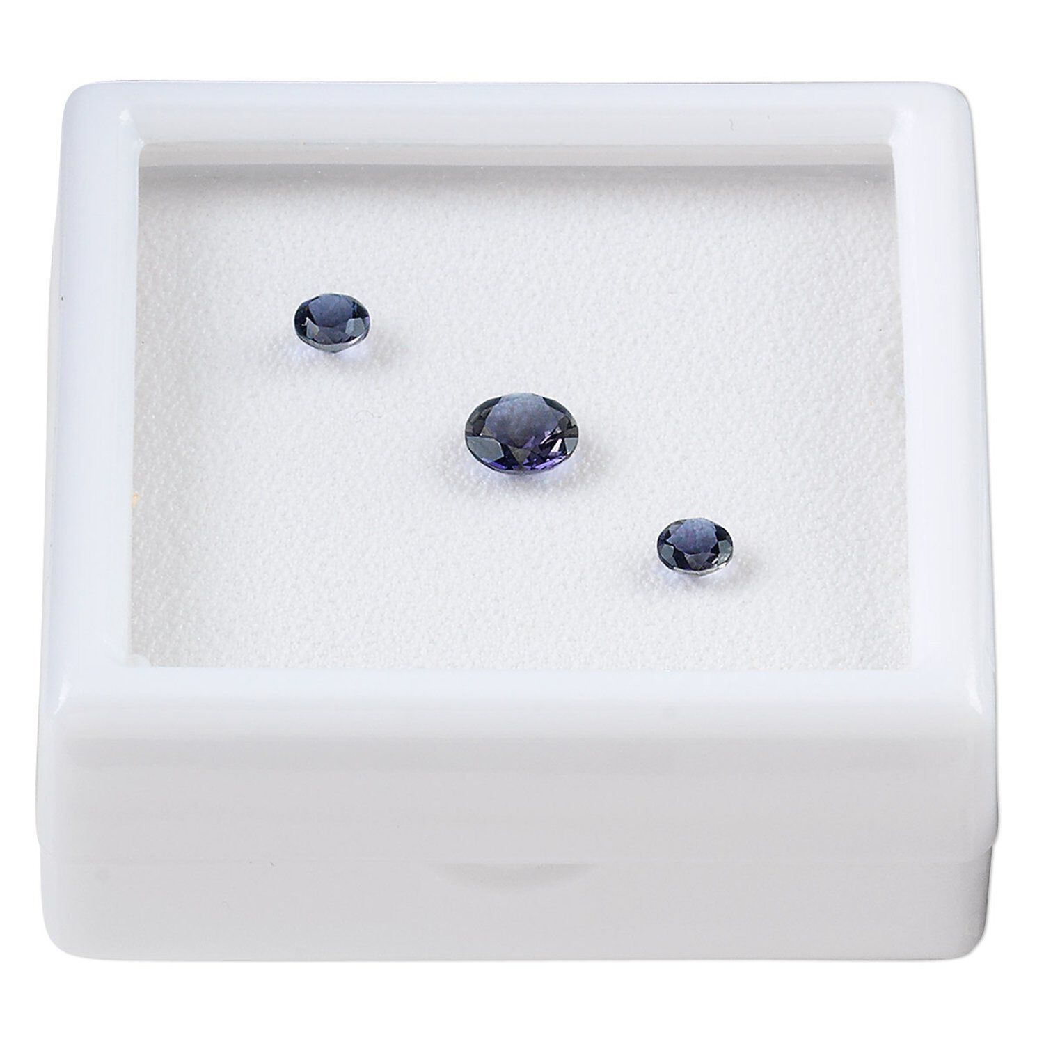 A-grade faceted round iolite gems work beautifully for creating matching necklace and earring sets. Package includes three quality gems, two 4mm and one 6mm, that can be easily mounted in coordinating silver or gold settings. The gems are packaged in a white acrylic box with a padded insert for protection during travel.