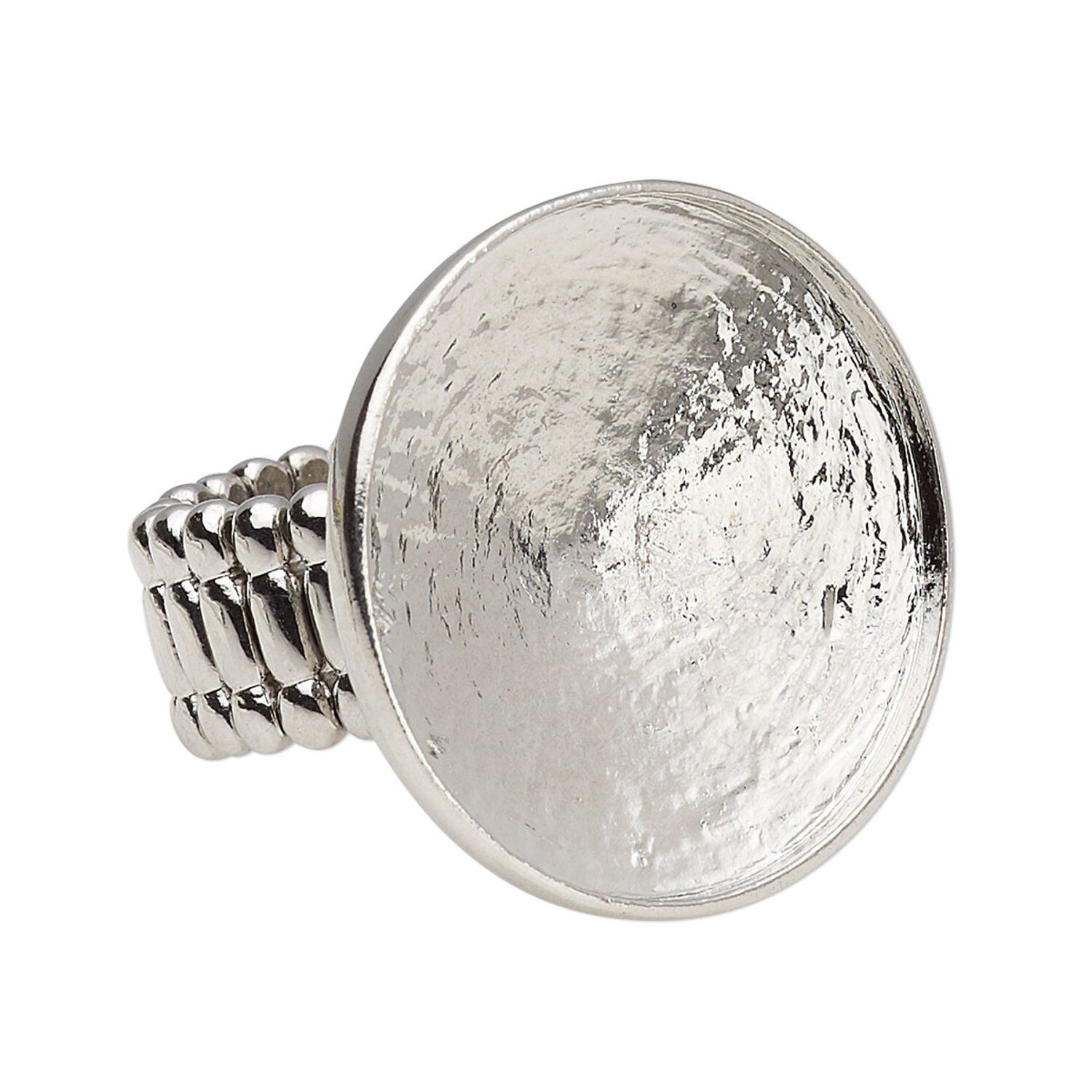 Ring, Almost Instant Jewelry®, stretch, imitation rhodium-plated copper, 28mm round with 27mm round setting. Sold individually.
