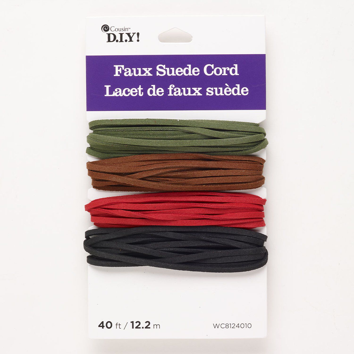 Cord, faux suede, pkg/(4) 10 feet, mixed colors, 3mm flat.