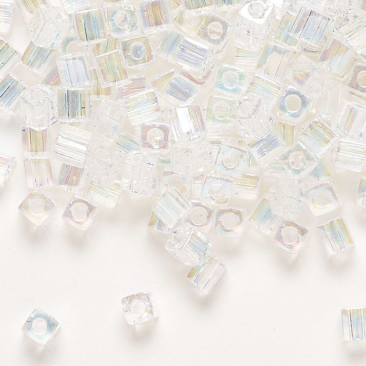 Seed bead, Miyuki, glass, pkg/250g, 3.5-3.7mm square, translucent rainbow clear (SB-250).
