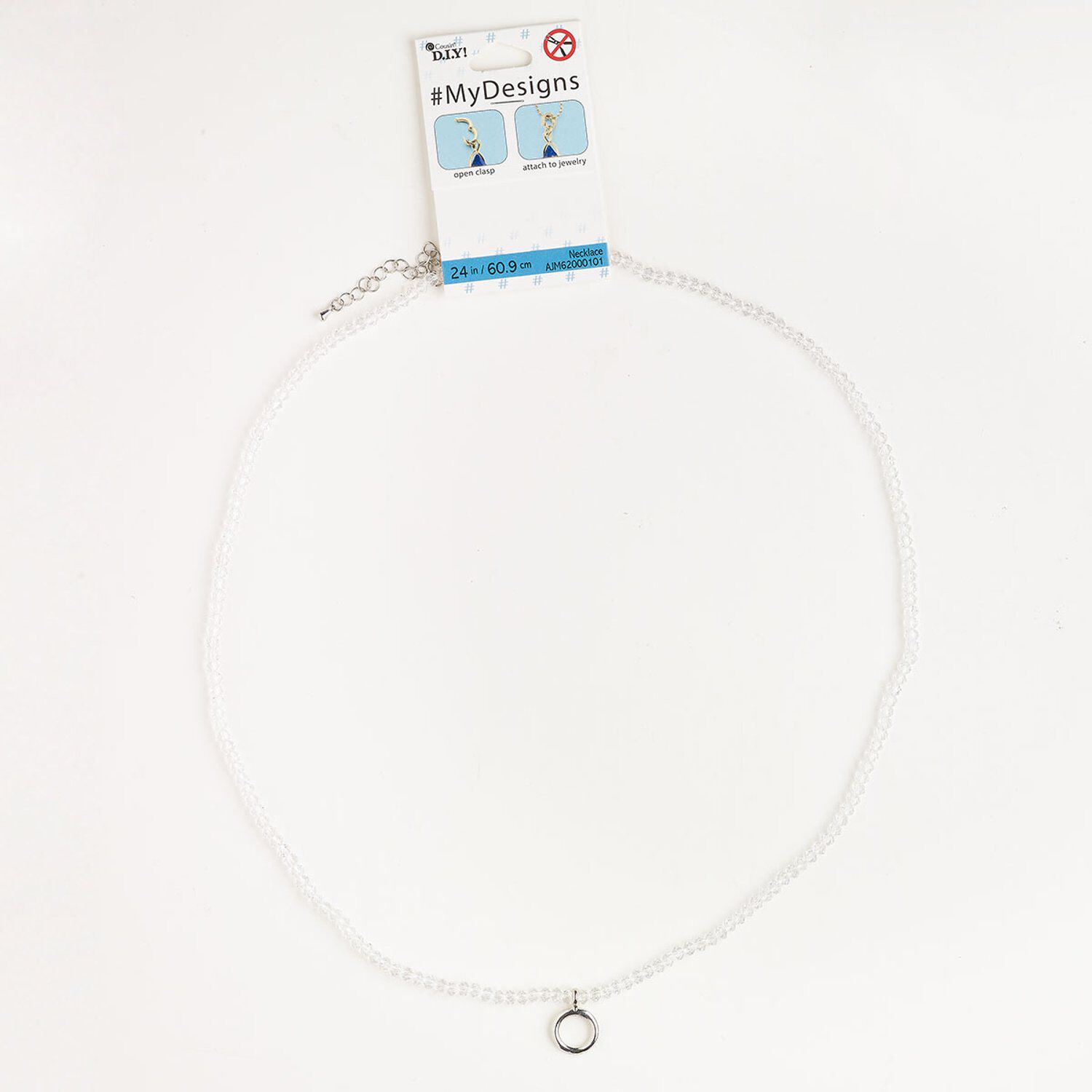 Necklace, "pewter" (zinc-based alloy)/steel/glass, pkg/24 inches, silver finish and clear, 14mm round with lobster claw clasp and extender chain.