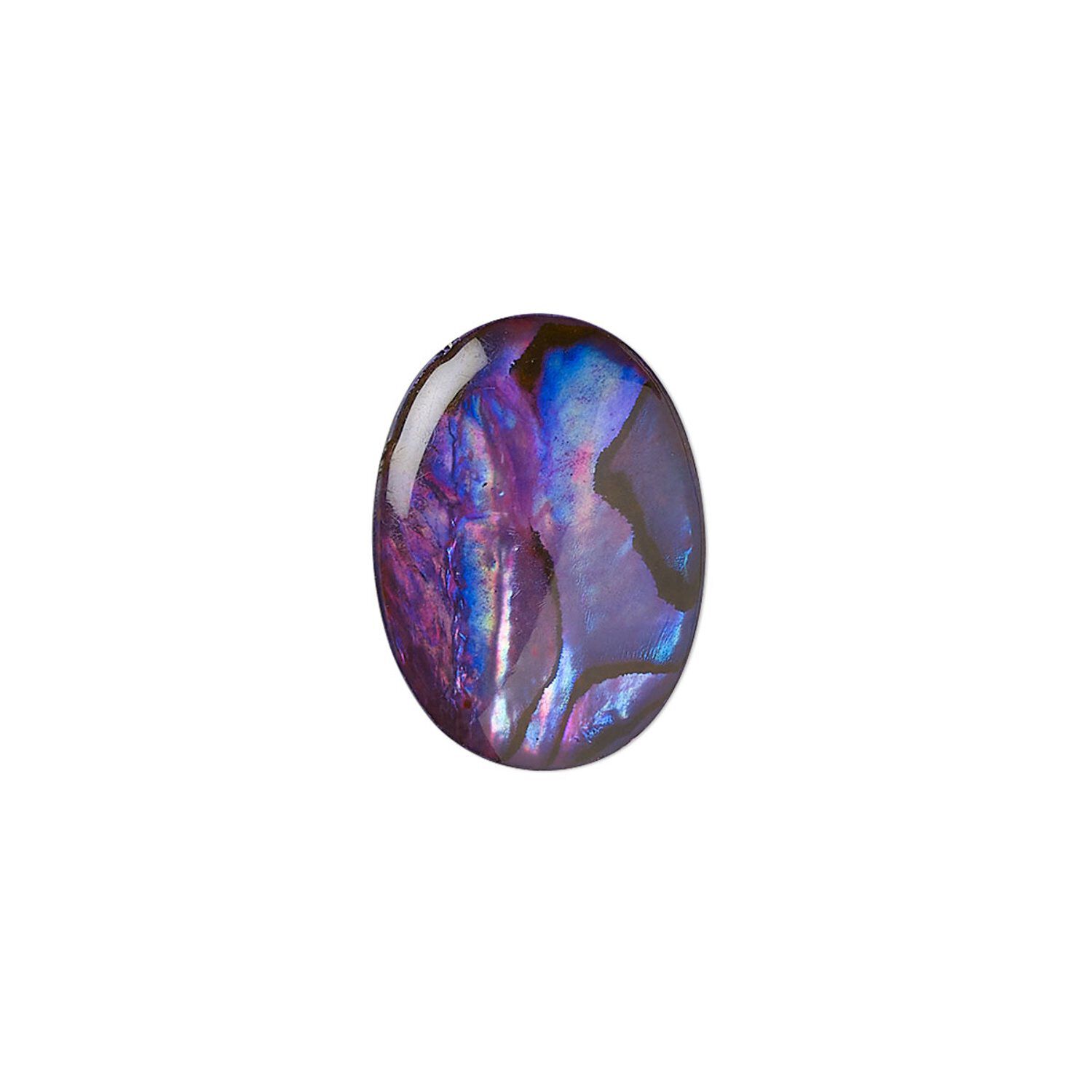 Cabochon, paua shell (coated / dyed), purple, 18x13mm calibrated oval, Mohs hardness 3-1/2. Sold per pkg of 4.