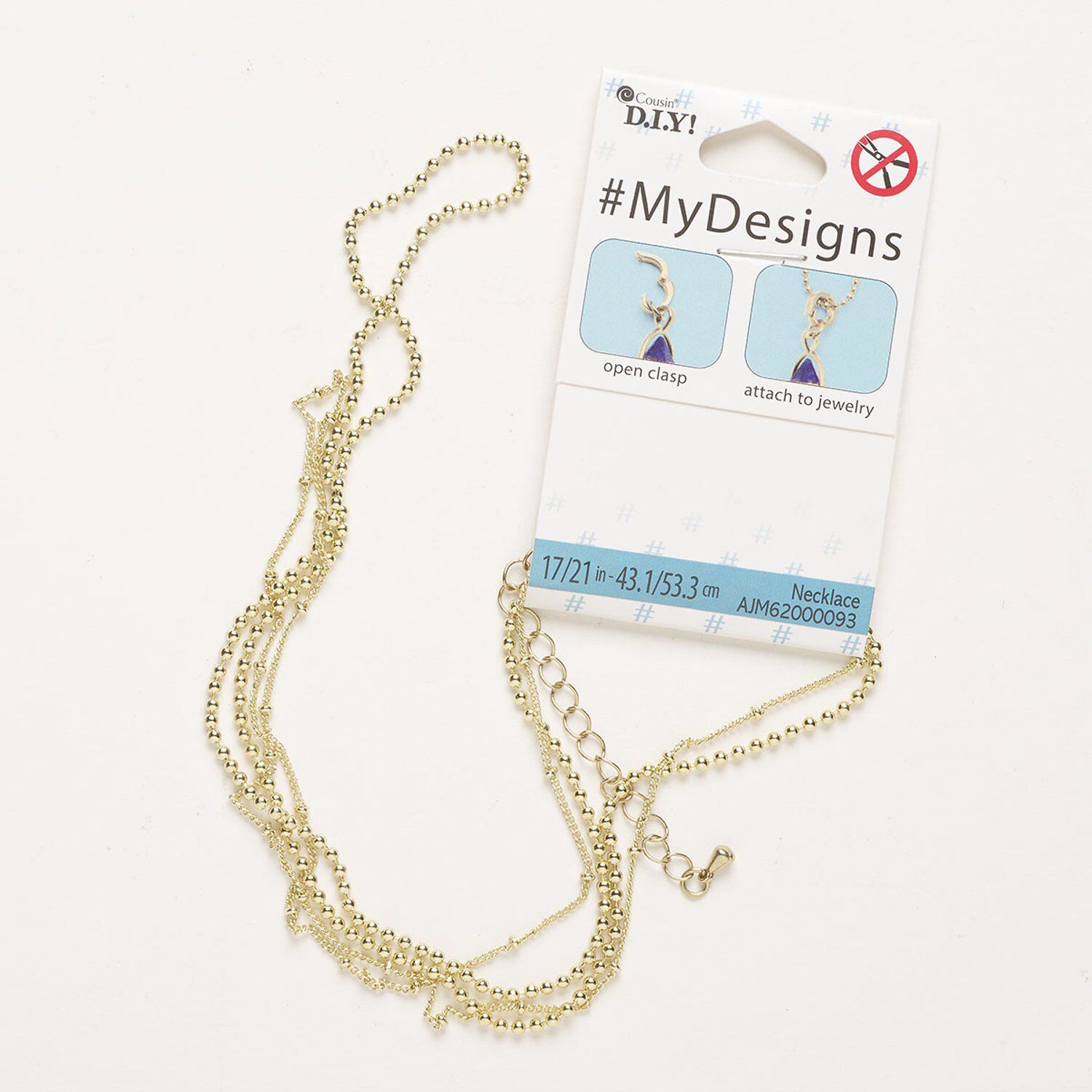 Necklace, 2-strand, steel, pkg/(1) 17 inches, gold finish, 2mm ball and 2mm curb with lobster claw clasp and 3-inch extender chain.