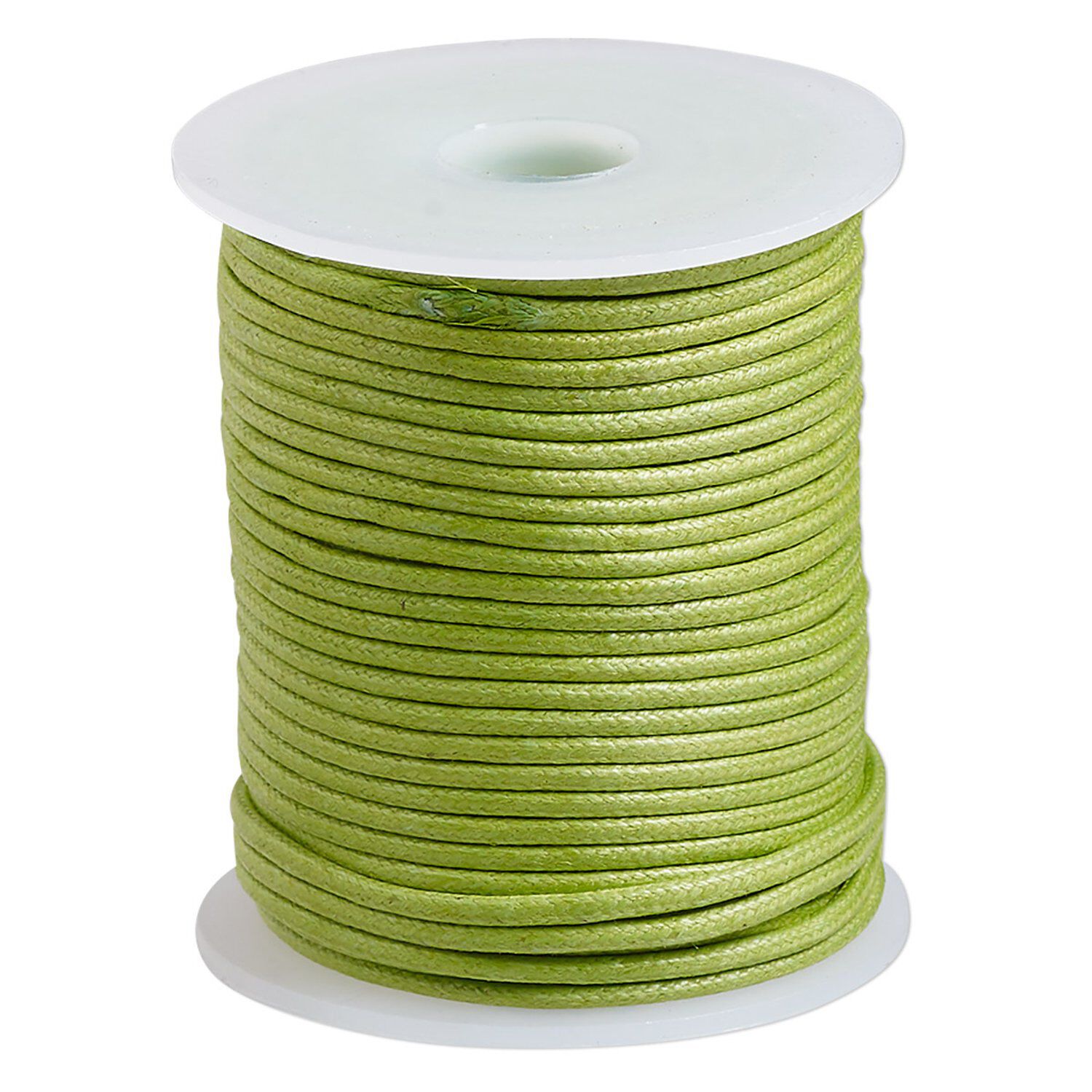 Cord, waxed cotton, lime, 2mm, 50+ pound test. Sold per 25-meter spool.