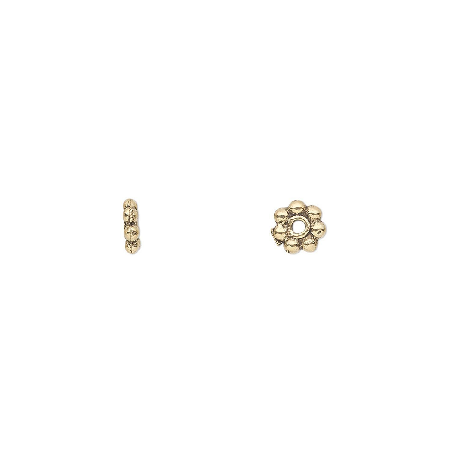 Bead, antique gold-plated pewter (tin-based alloy), 5x1.5mm flat beaded rondelle. Sold per pkg of 30.