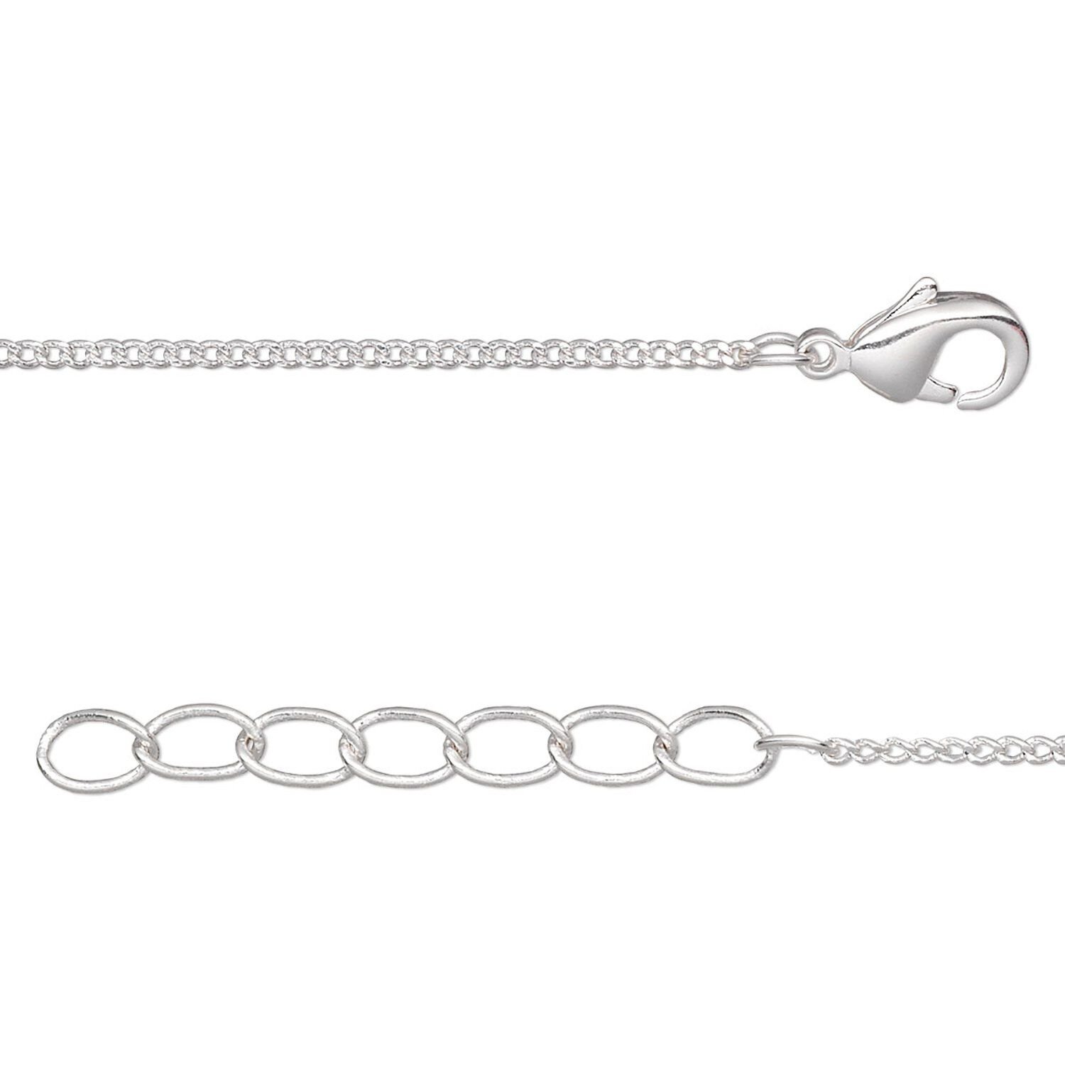 Chain, silver-plated brass, 1mm curb, 36 inches with 1-1/4 inch extender chain and lobster claw clasp. Sold per pkg of 2.