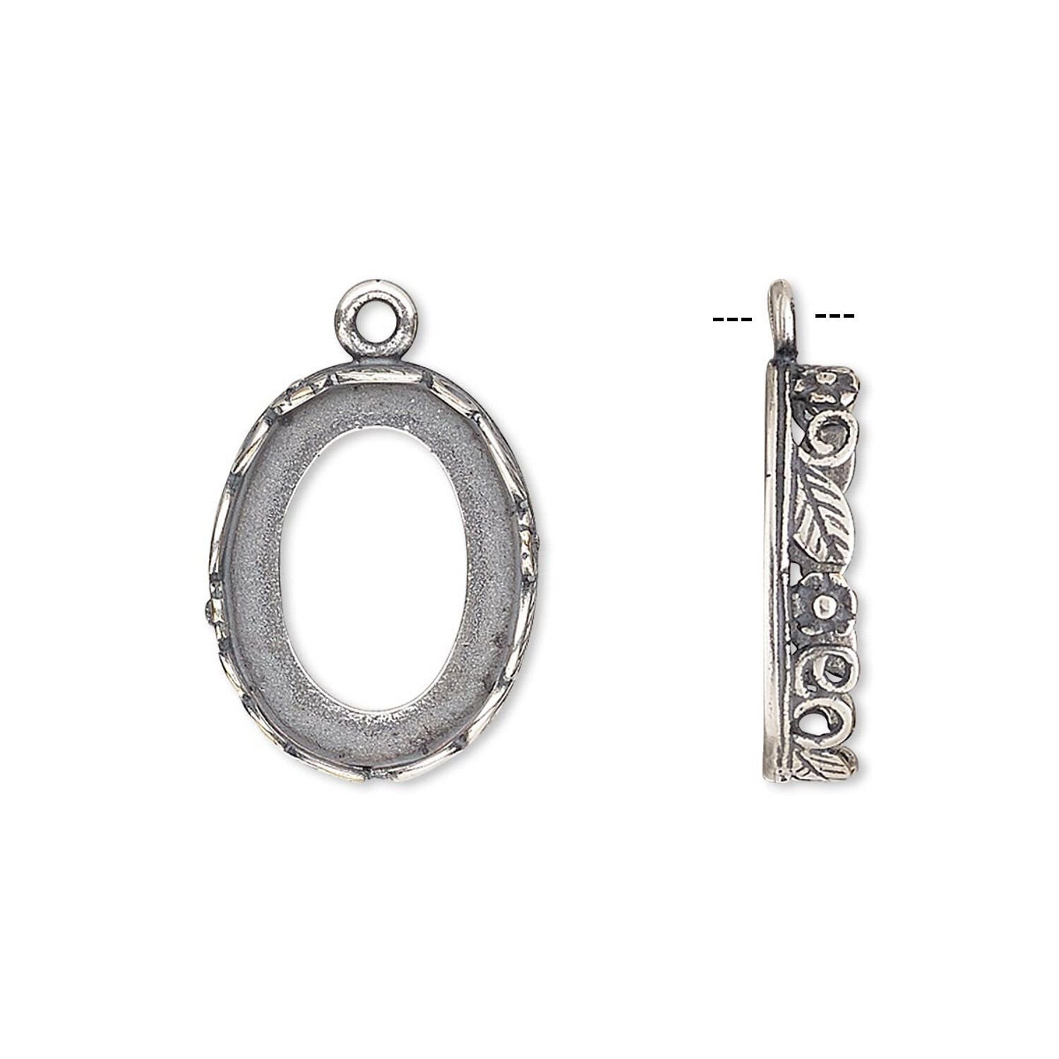 Drop, JBB Findings, antique silver-plated brass, 17x14mm oval with open back and flower and leaf design trim, 16x12mm oval bezel setting. Sold per pkg of 2.