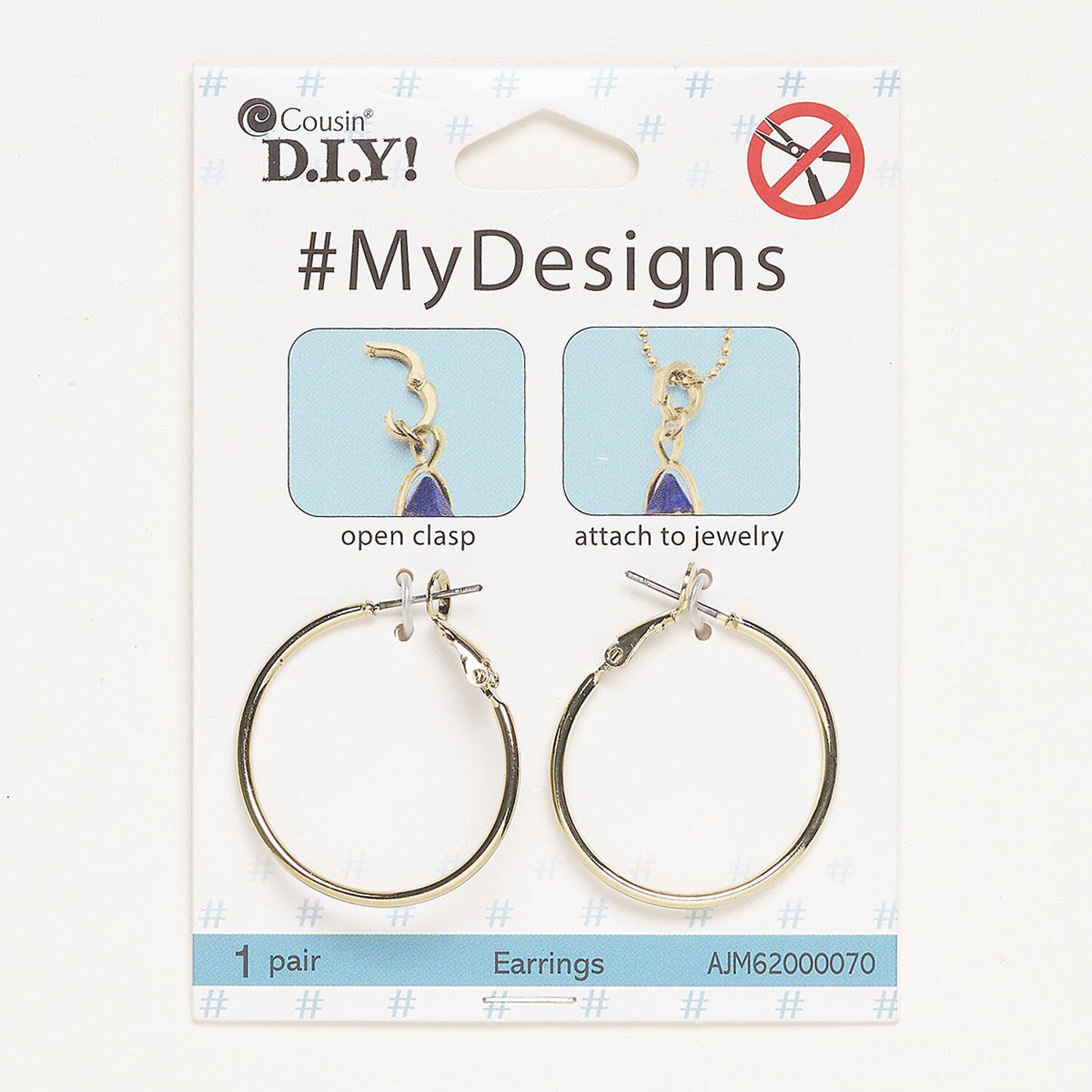 Earring hoop 1pkg2, 30mm hinged, gold-finished steel 1 pair