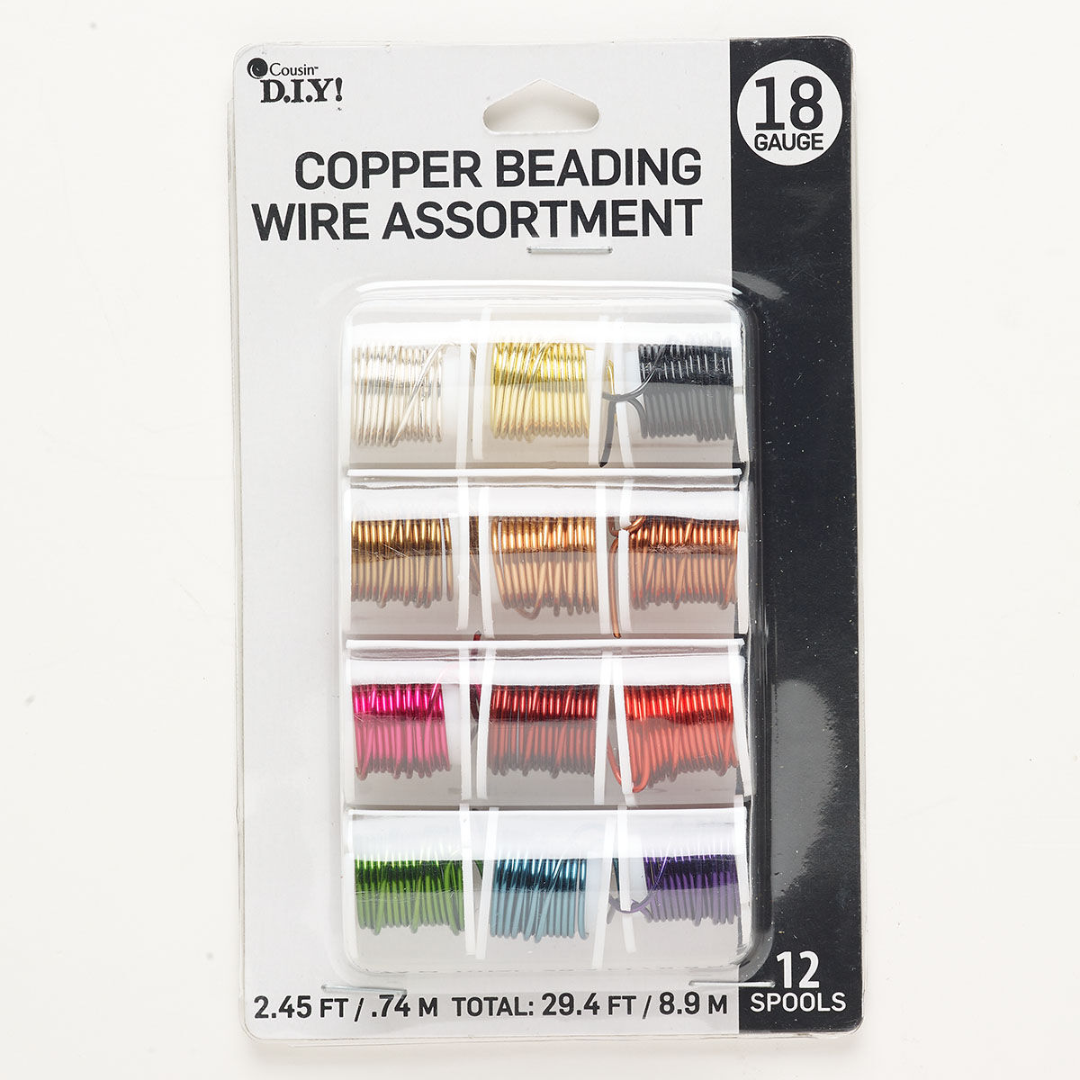 Wire assortment 1pkg12 copper, assorted colors, round, 18 gauge, 2.45-foot spools.