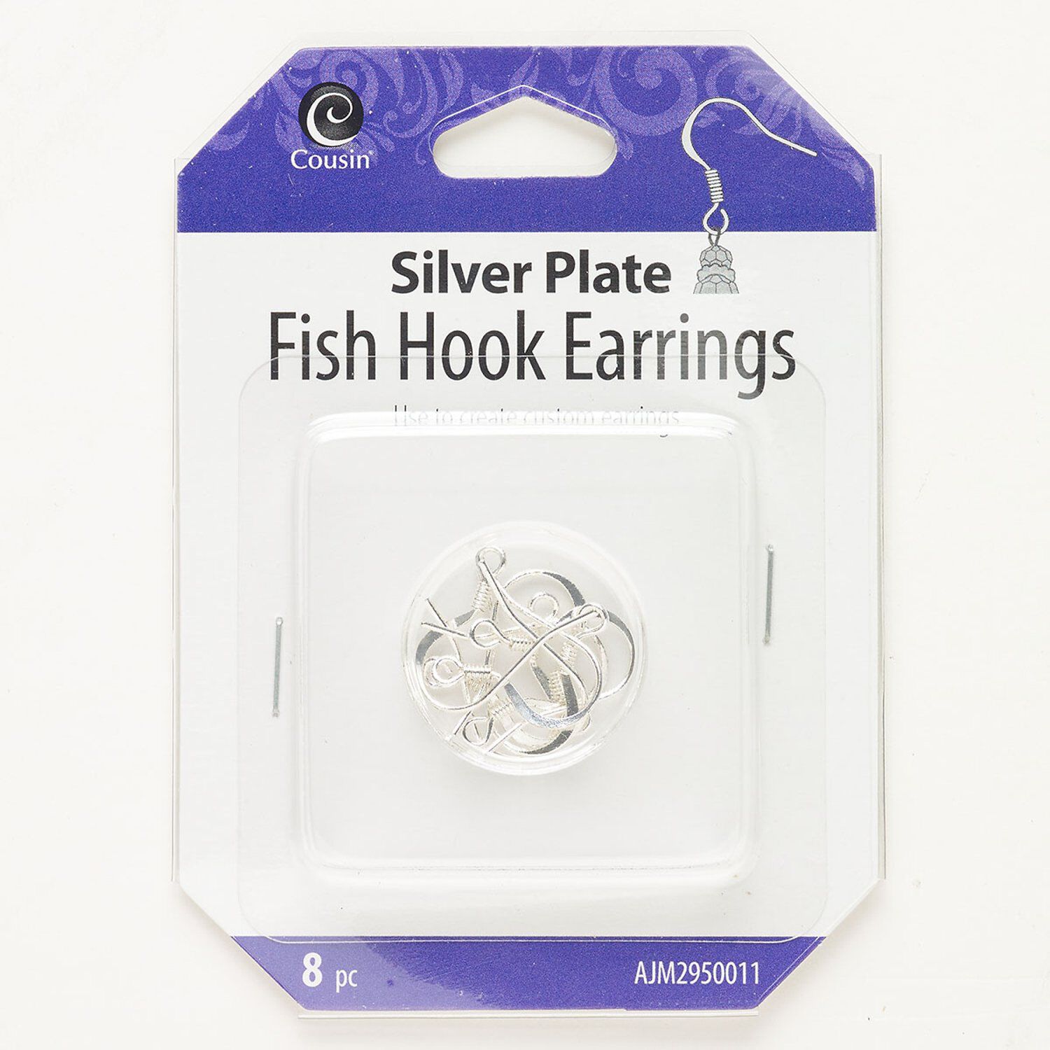 Ear wire fishhook 1pkg8, 17mm flat / 4mm coil / open loop, 21 gauge silver-finished brass 4 pair