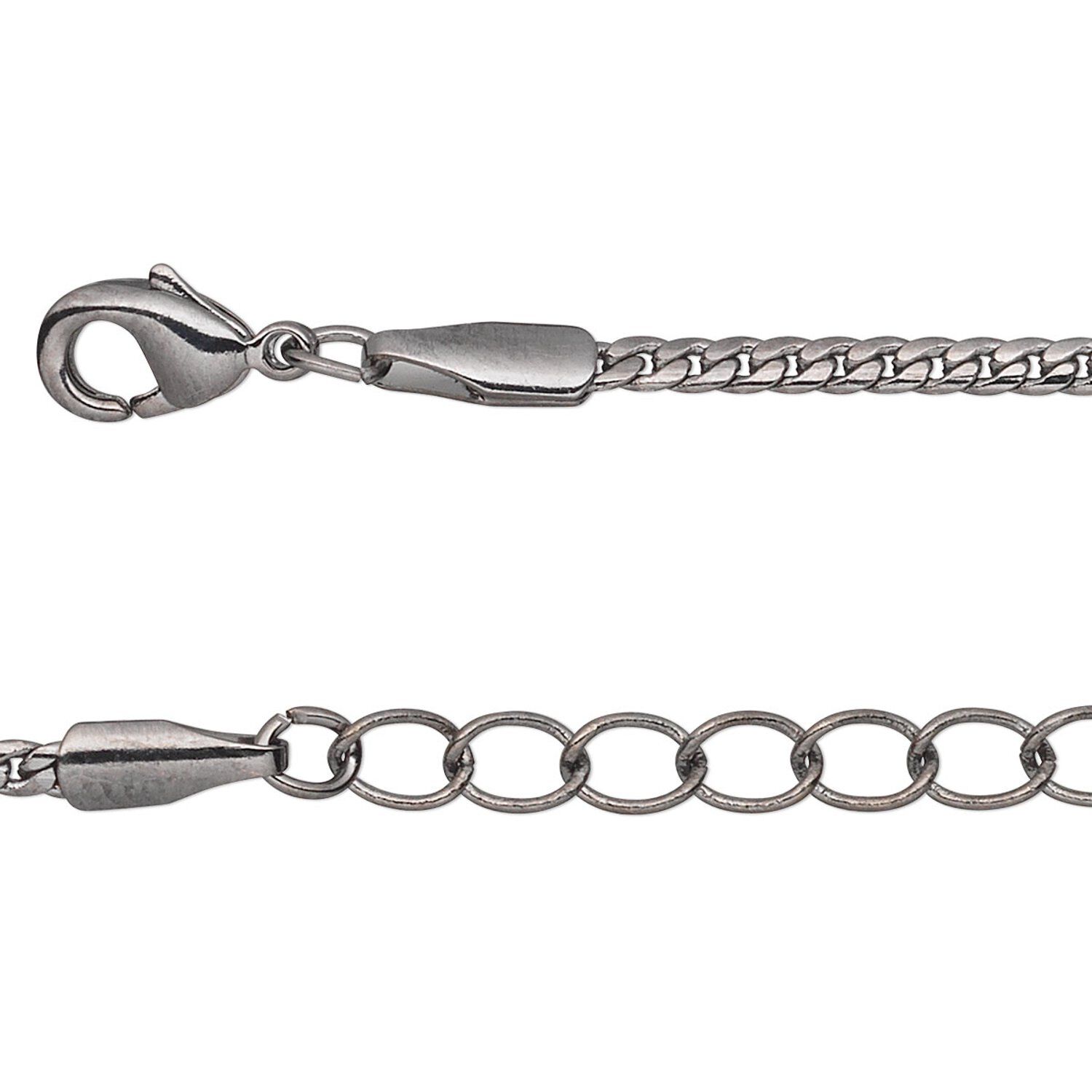 Chain, gunmetal-plated brass, 2mm curb, 24 inches with 1-1/4 inch extender chain and lobster claw clasp. Sold per pkg of 2.
