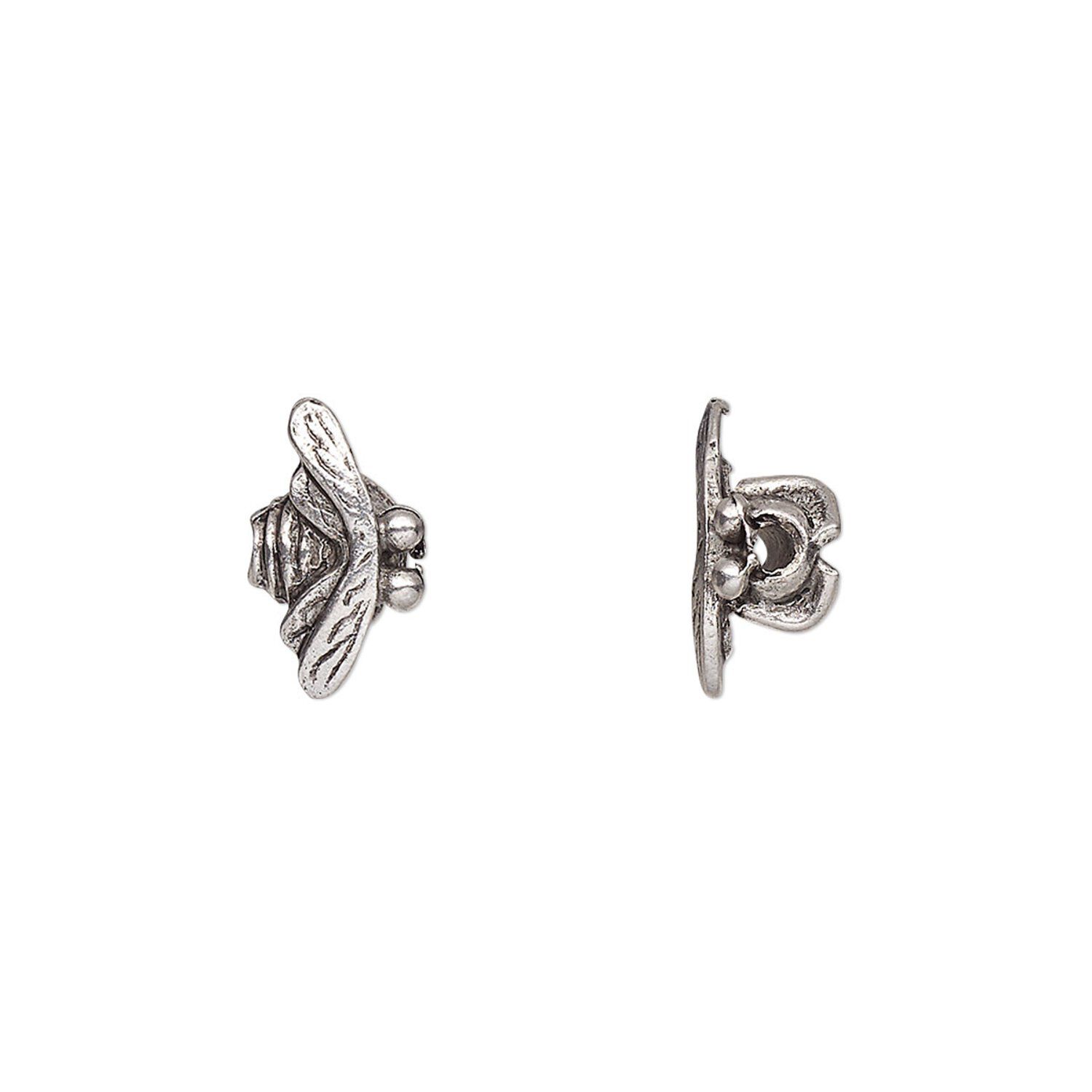 Bead, antiqued pewter (tin-based alloy), 13x6mm bee. Sold per pkg of 4.