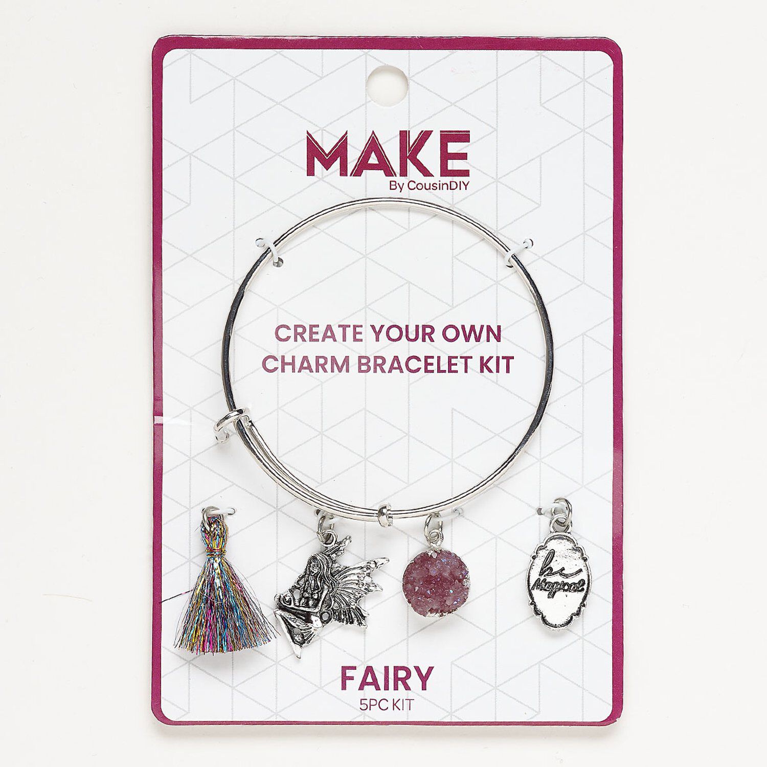 Package contains (1) bangle, (1) 27x20mm fairy, (1) 14mm round druzy, (1) 20x13mm oval with "be Magical" and (1) 1-inch tassel.