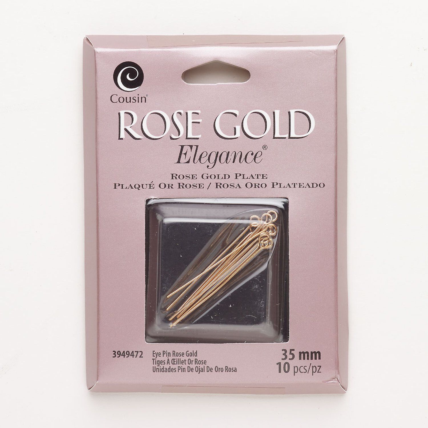 Eye pin, copper, pkg/10, rose gold plate, 1-1/2 inches, 22 gauge.