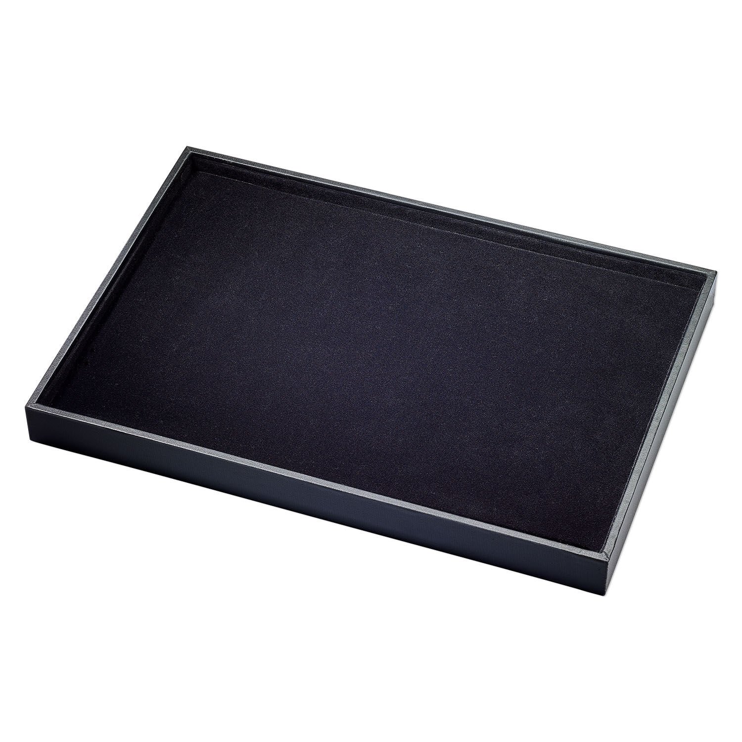 Display tray, earring, leatherette and velveteen, black, 13-3/4 x 1-1/4 x 9-1/2 inches with insert, holds up to 99 pairs. Sold individually.