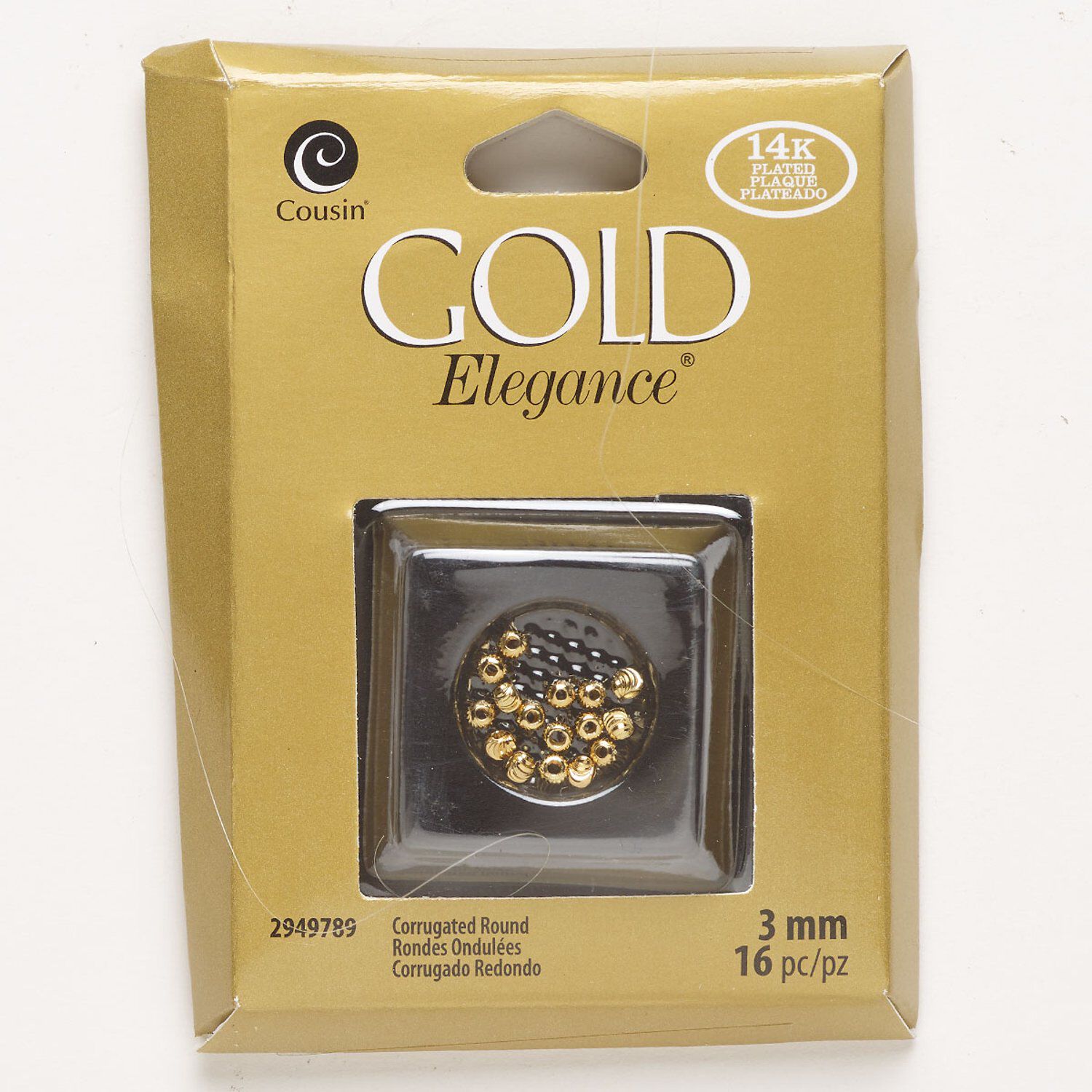 Bead, copper, pkg/16, gold plate, 3mm corrugated round.