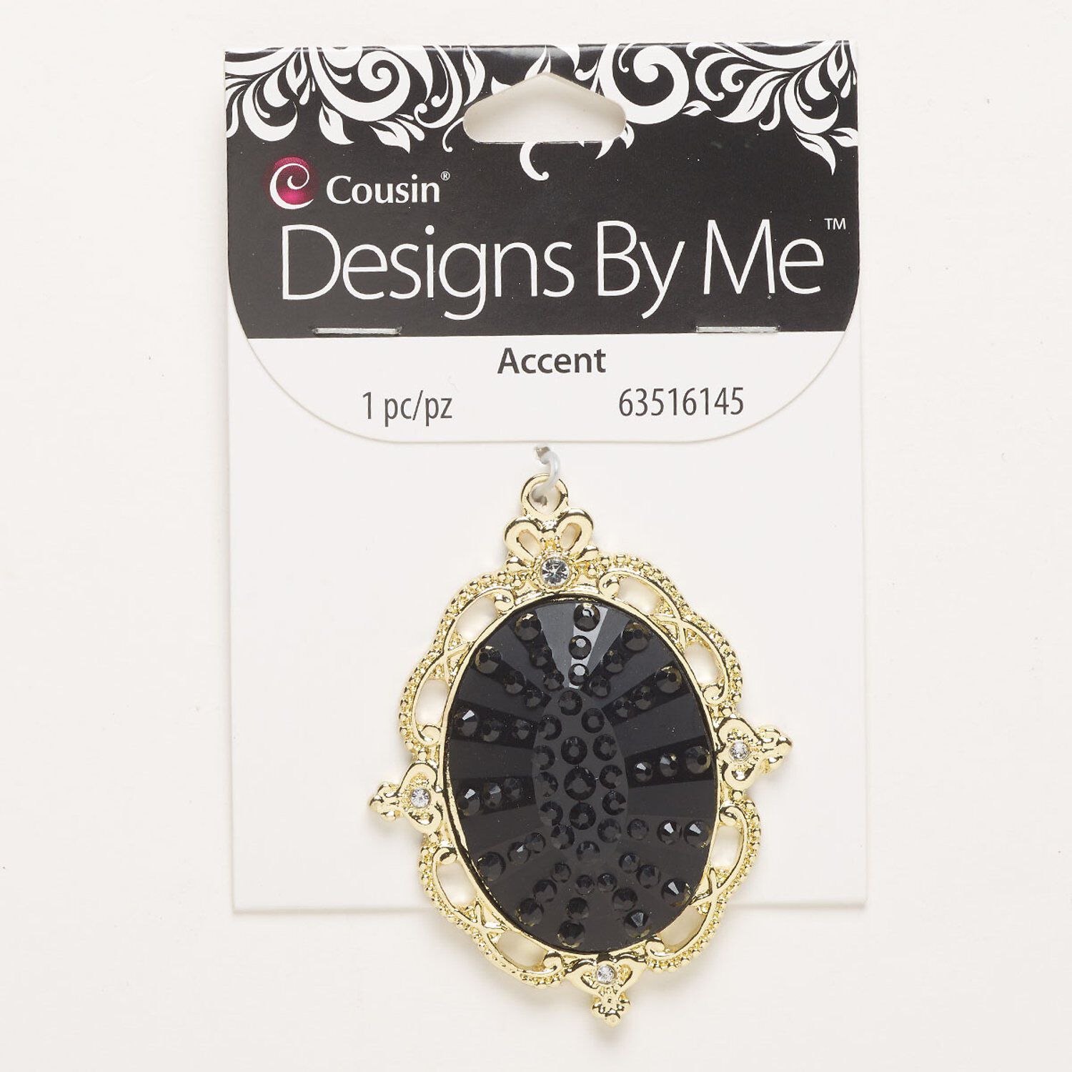 Focal, brass and glass, pkg/1, gold finish / black / clear, 58x47mm fancy oval.