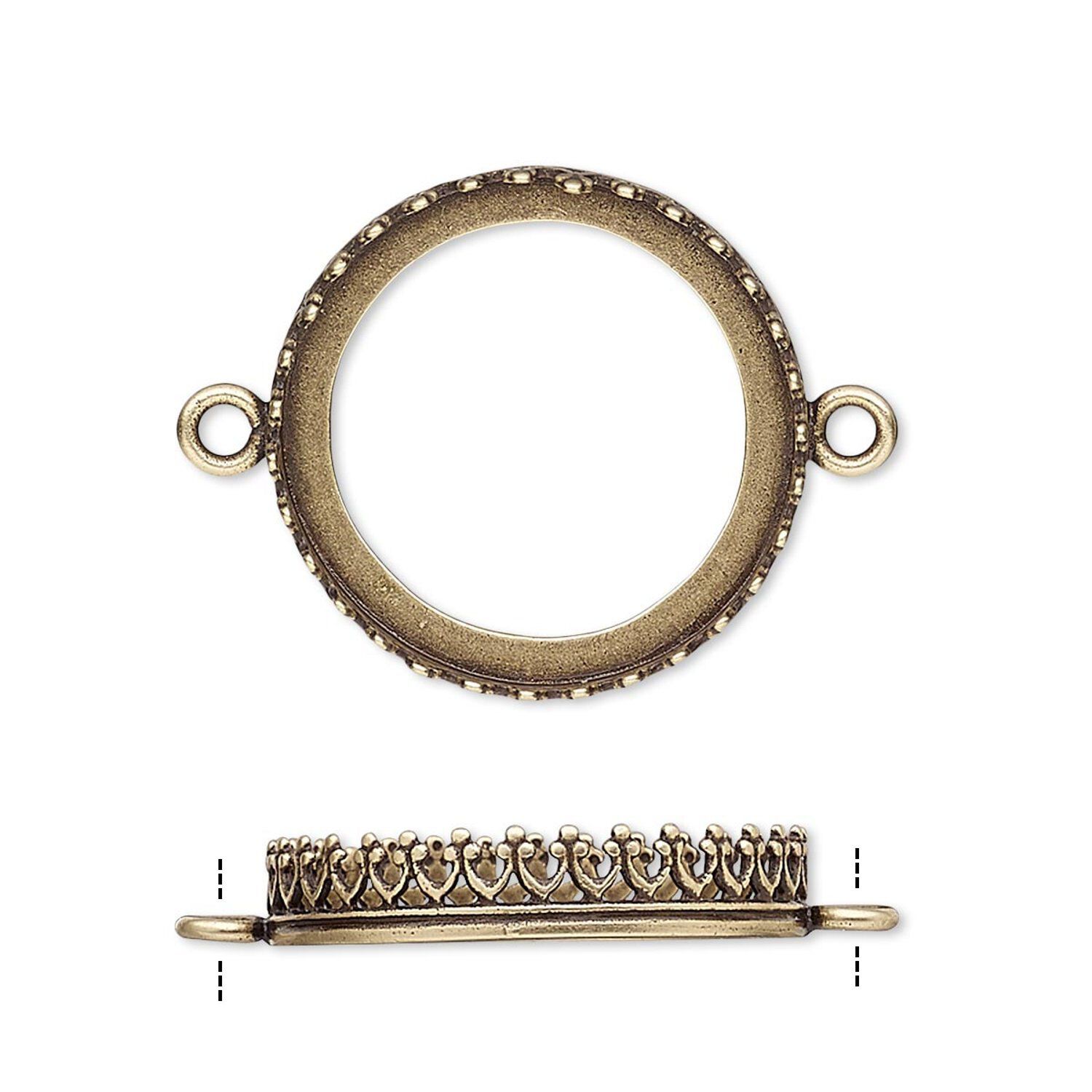 Link, JBB Findings, antiqued brass, 22mm round with open back and decorative trim, 20mm round bezel setting. Sold per pkg of 2.