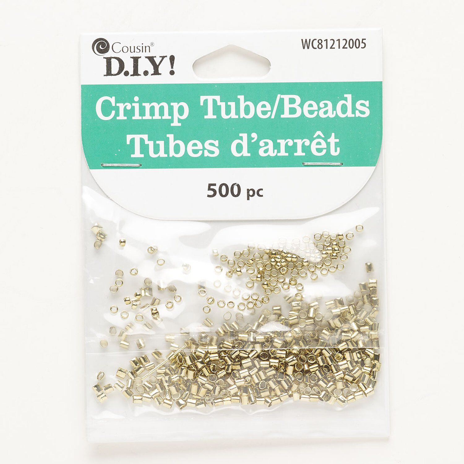 Crimp mix, brass, pkg/500, gold finish, 2mm round and 2.5x2mm tube.