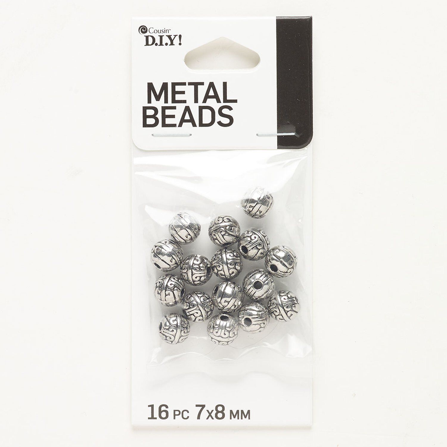 Bead, "pewter" (zinc-based alloy), pkg/16, antique silver finish, 8x7mm rondelle.