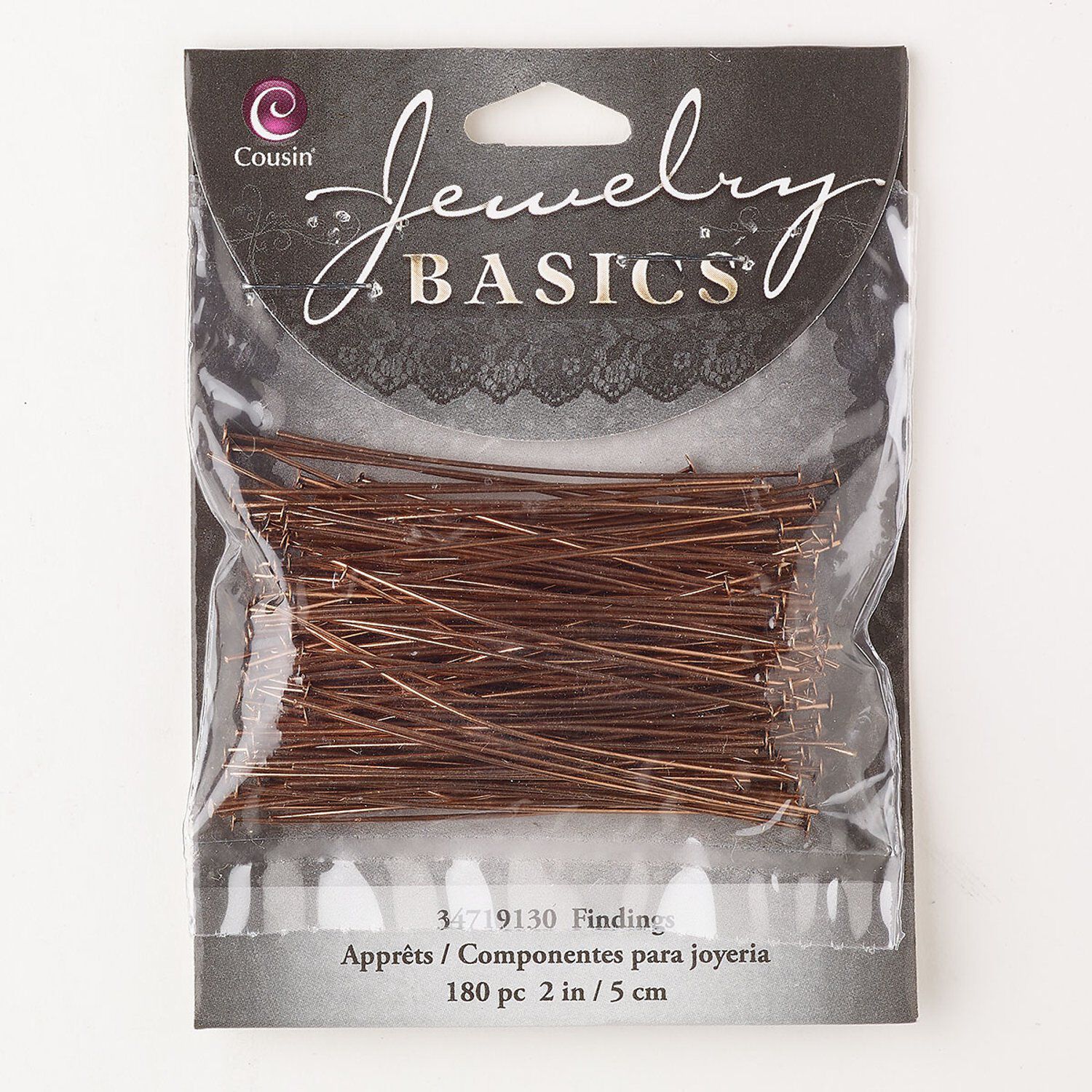 Head pin, steel, pkg/180, antique copper finish, 2 inches, 23 gauge.