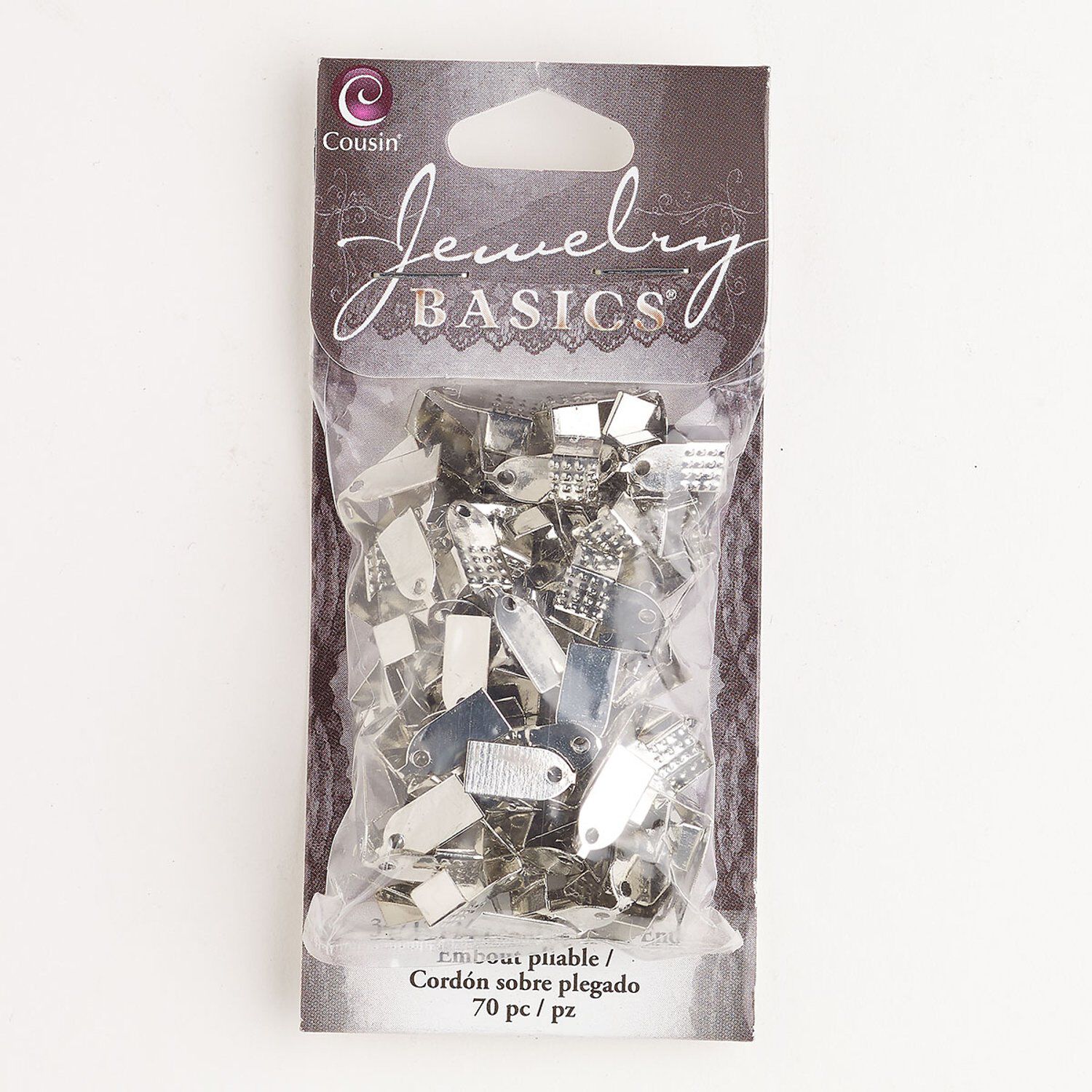 Cord end, steel, pkg/70, antique silver finish, 6x5mm fold-over rectangle.