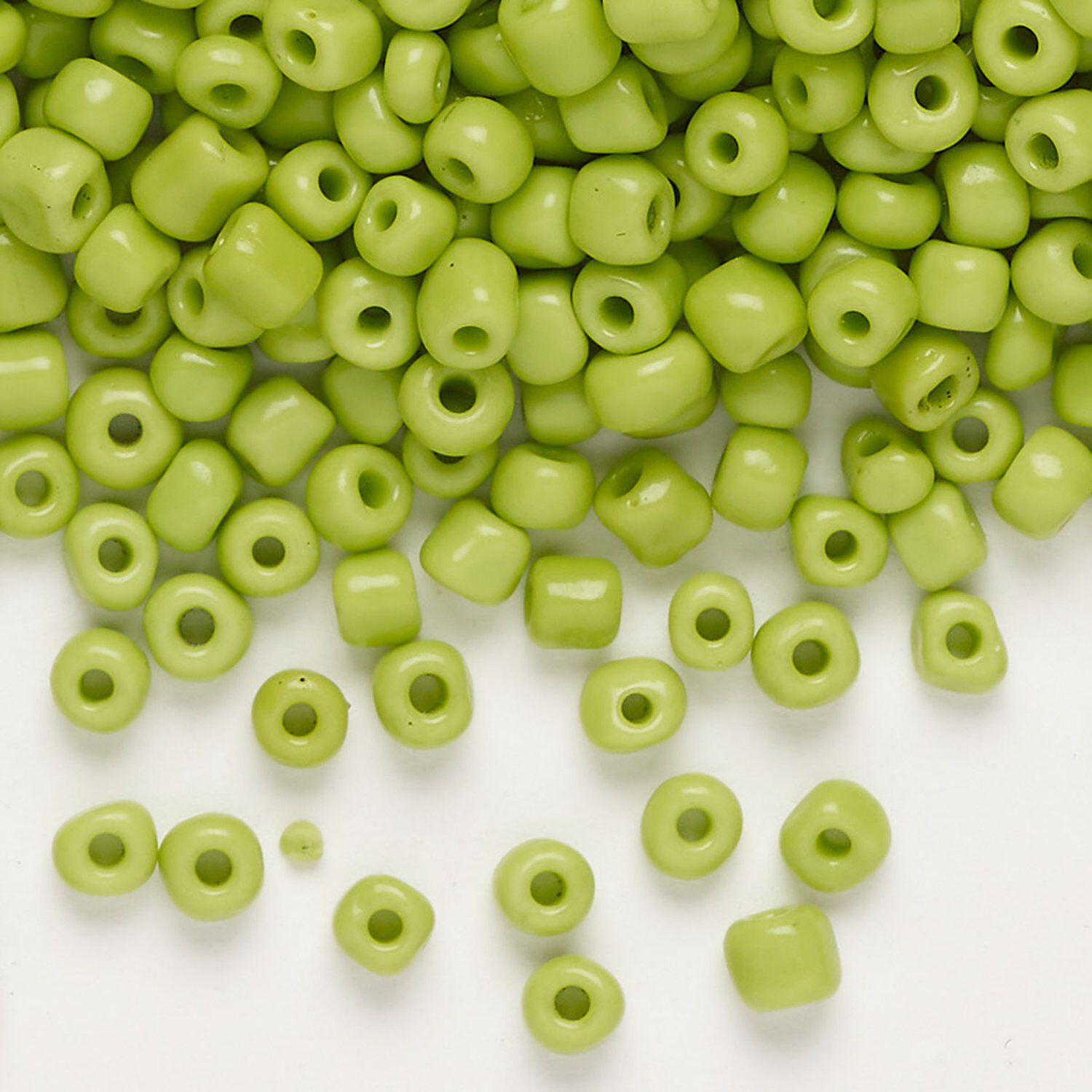 Seed bead, glass, pkg/100g, #6 round, opaque green apple.