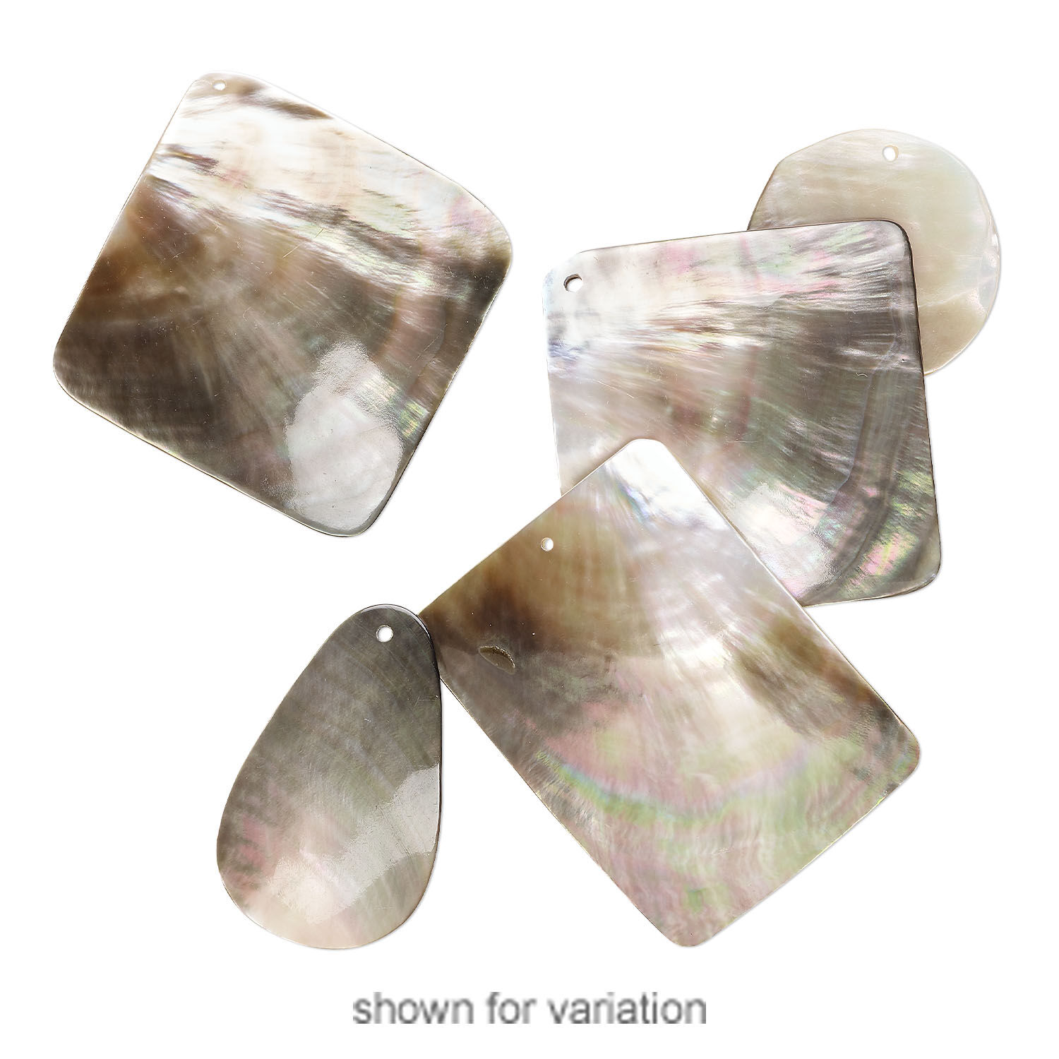 Shell materials can include mother-of-pearl shell, gold lip shell and black lip shell. Shapes can include flat square, flat rectangle, flat donut, flat round, flat marquise and more. Drill hole placement can vary; package can include top-drilled, center-drilled and undrilled pieces.