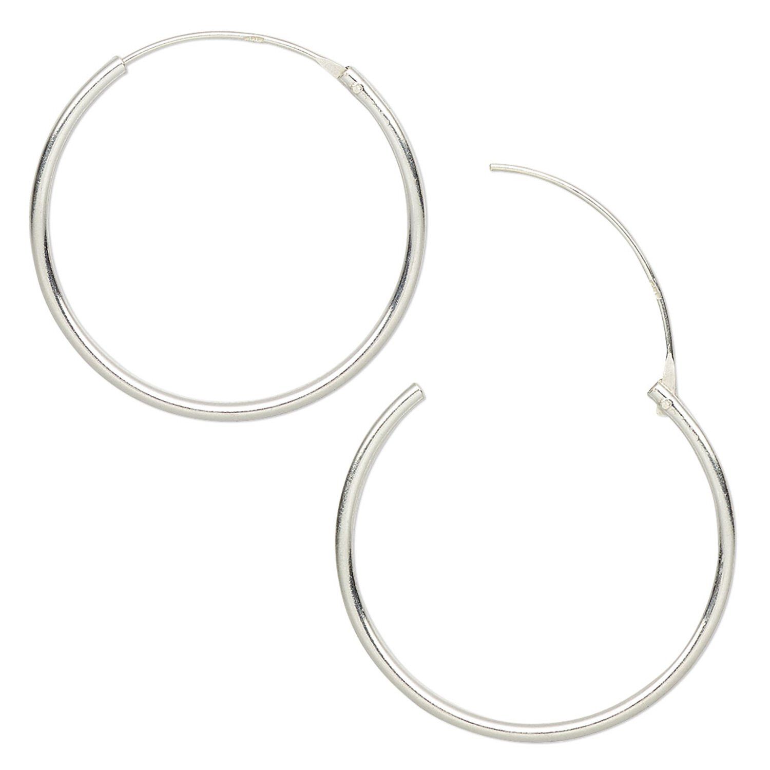 Earring hoop 1pkg4 sterling silver, 25mm round / endless loop, 2 pair