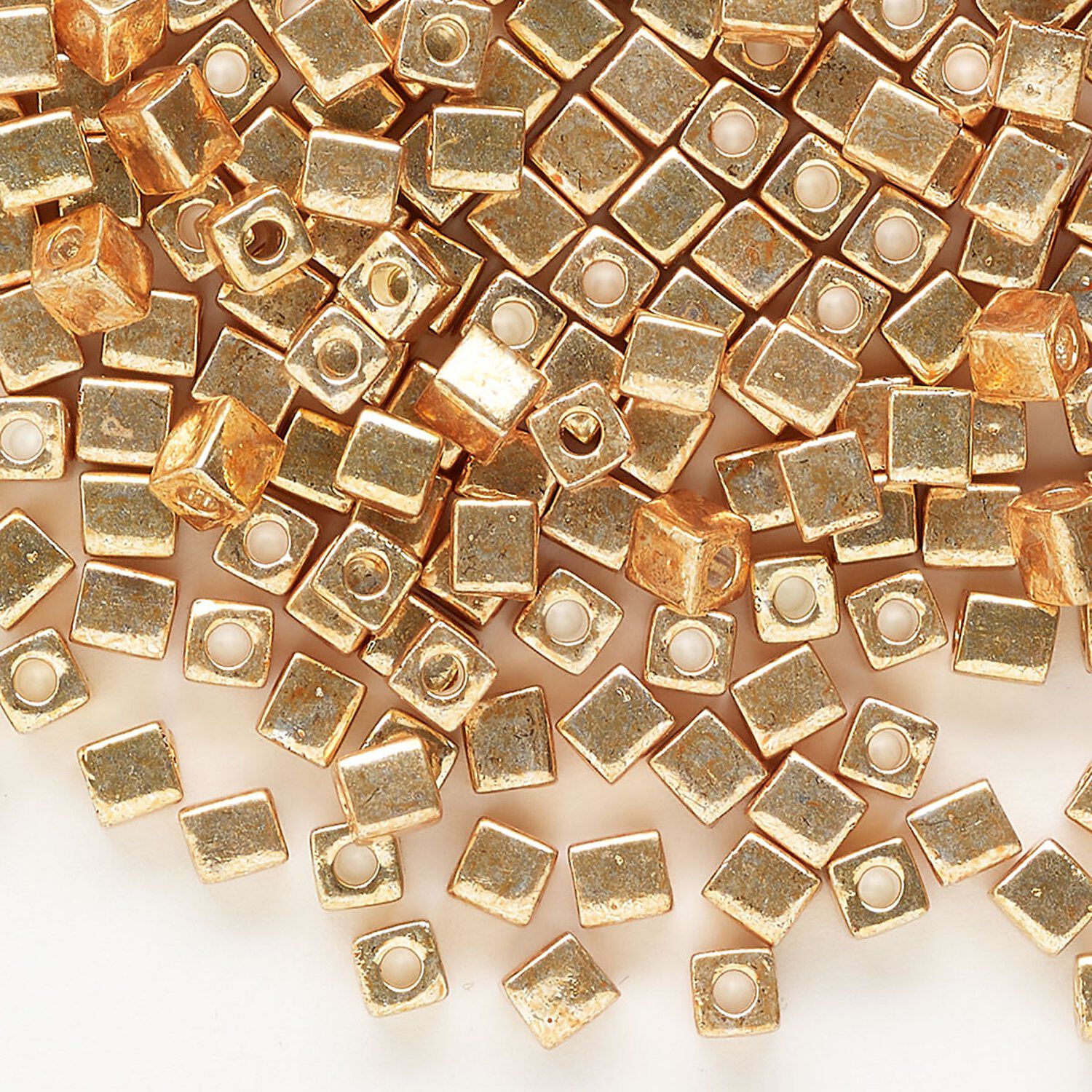 Seed bead, Miyuki, glass, pkg/250g, 3.5-3.7mm square, opaque metallic gold (SB-1053).