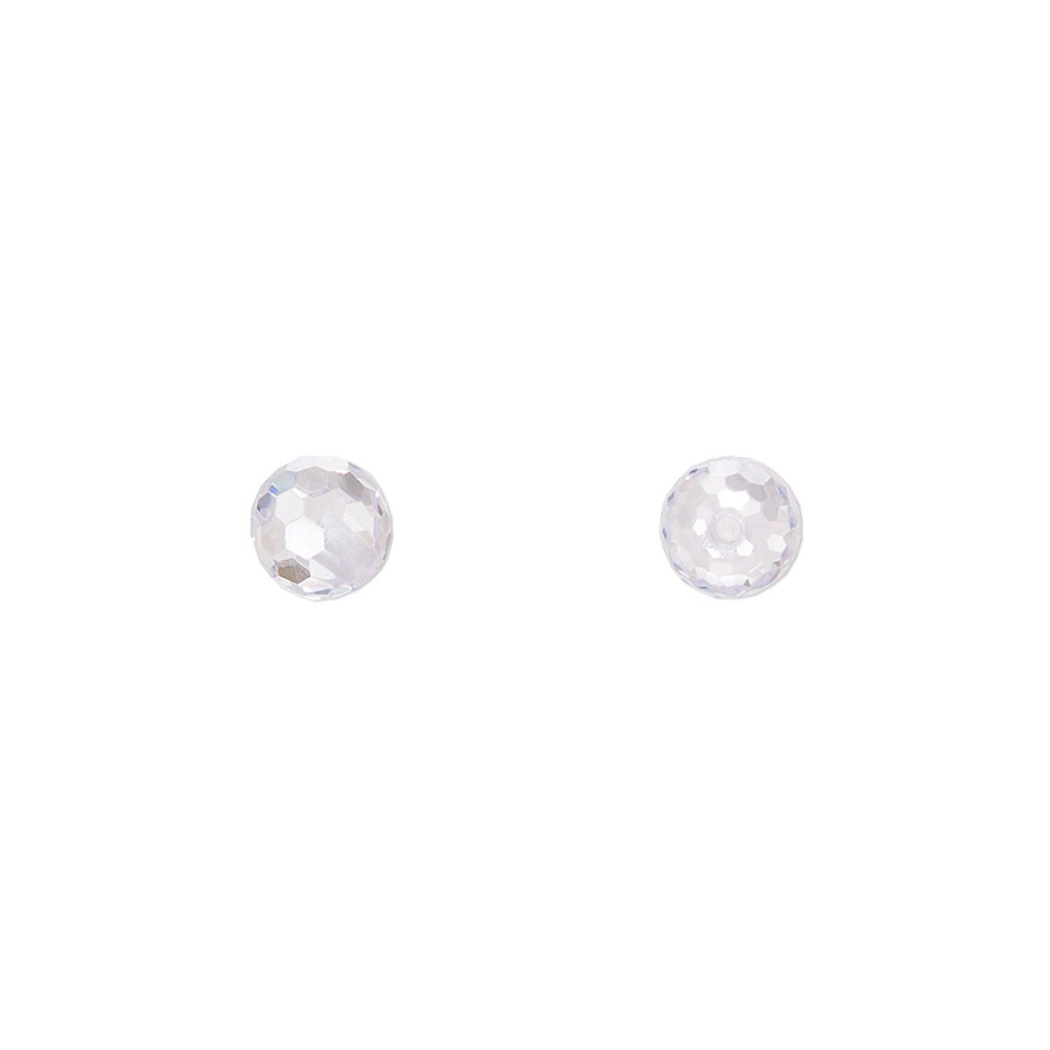 Bead, cubic zirconia, clear, 6mm half-drilled faceted round. Sold per pkg of 2.