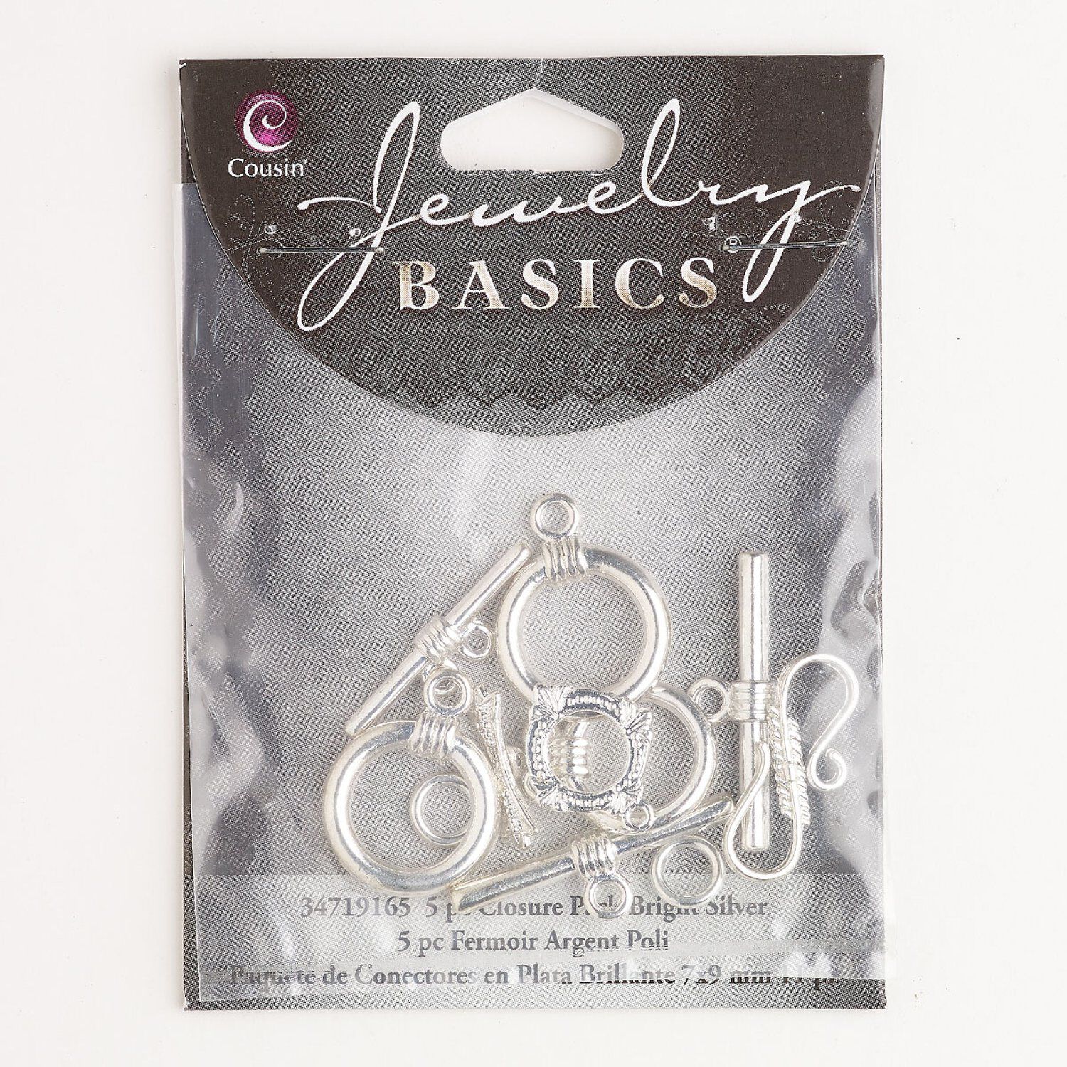 Package contains (2) 18mm round toggles, (1) 16x14.5mm fancy diamond toggle, (1) 16mm round toggle with 2 loops and (1) 24x8mm S-hook with (2) 7.5mm 16-gauge closed jump rings.